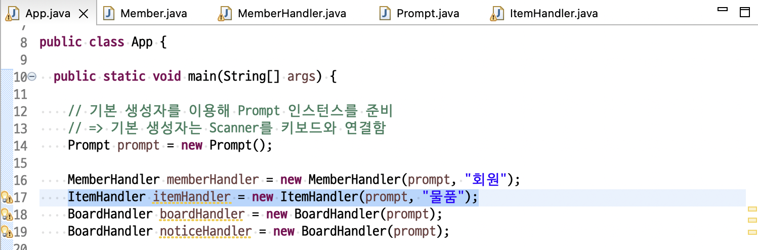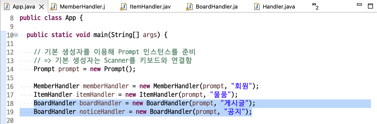 ㄴ MemberHandler.java 에서 prompt 에 띄워줄 제목 변수 title을 private 으로 선언