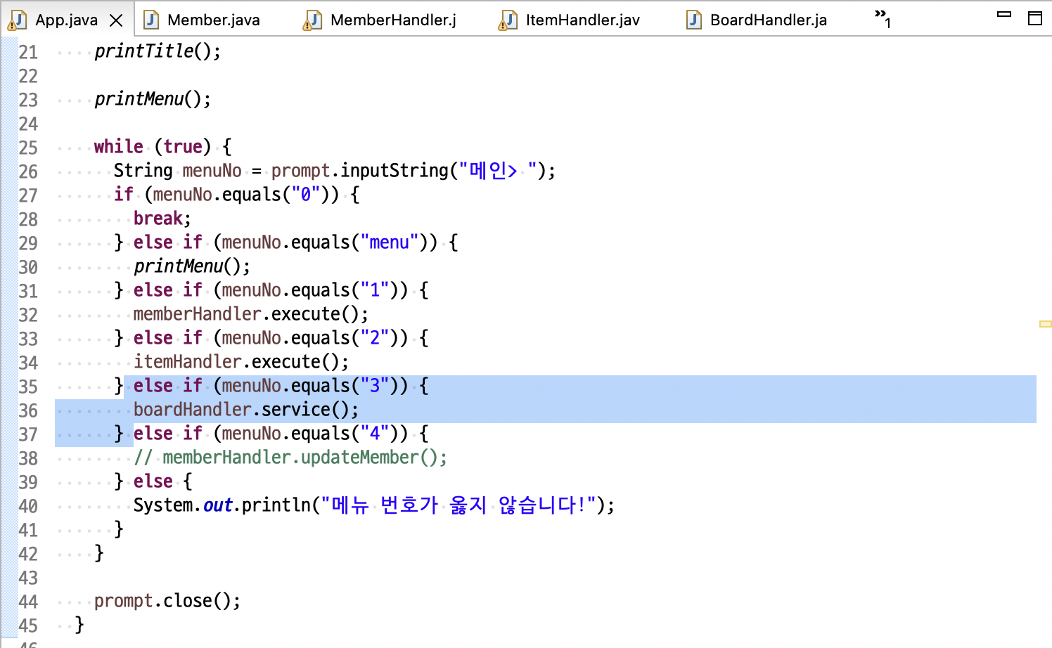 } else if (menuNo.equals("3")) {
