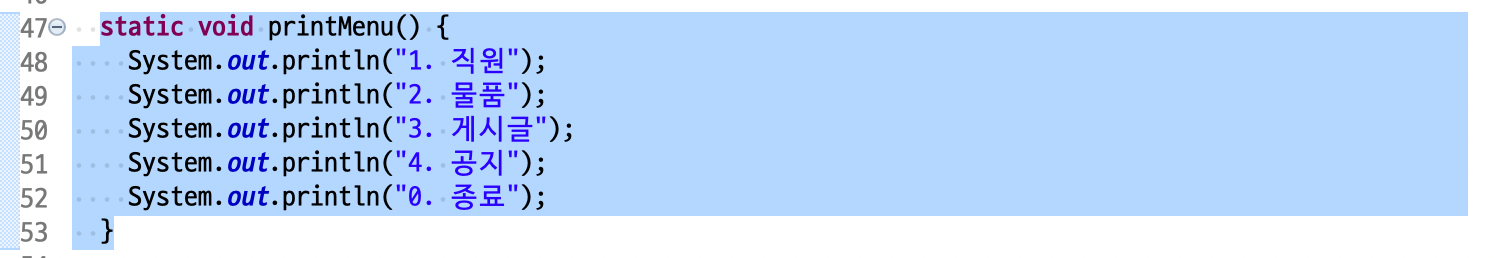 System.out.println("메뉴 번호가 옳지 않습니다!");