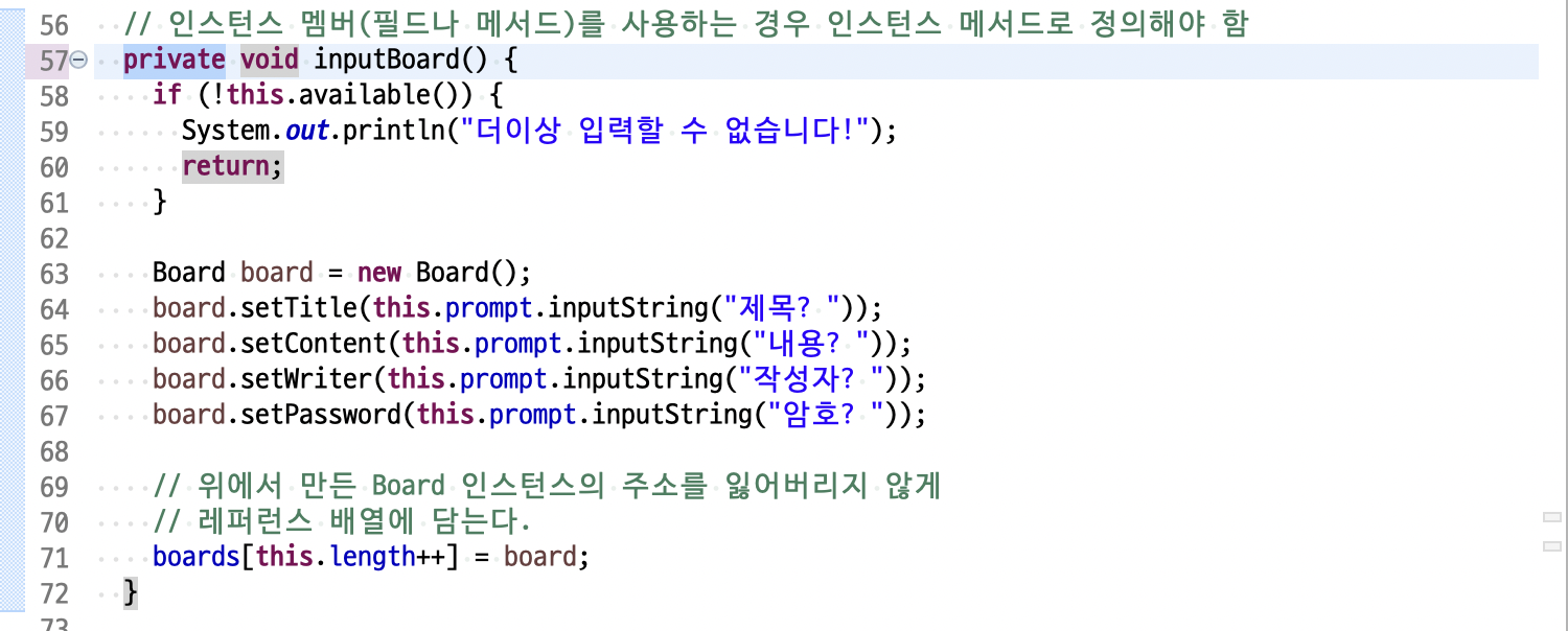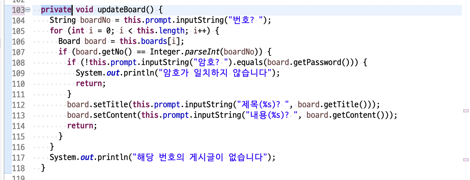 String menuNo = prompt.inputString("게시글> ");