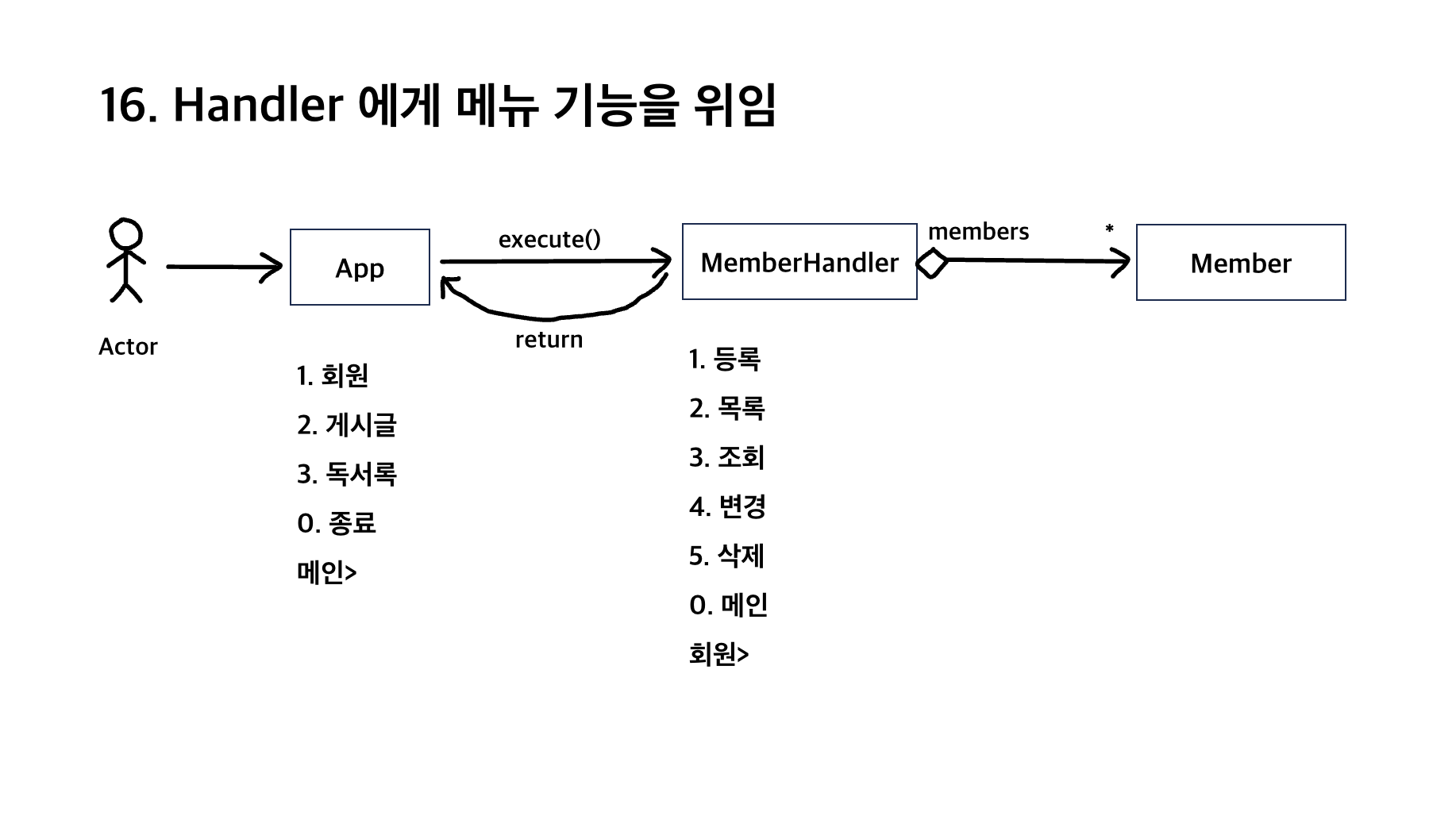 - CRUD 메뉴 기능은 핸들러로 이전