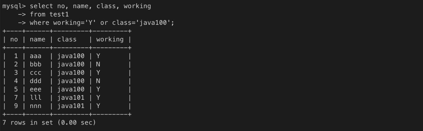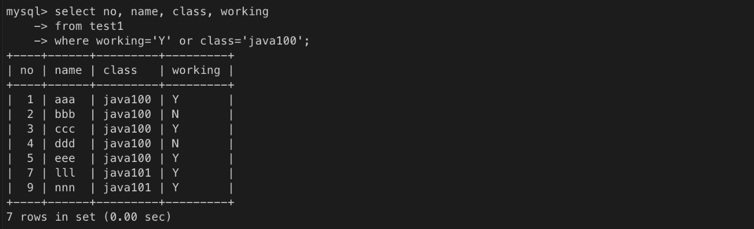 - where 절과 연산자를 이용하여 조회 조건을 지정할 수 있다.