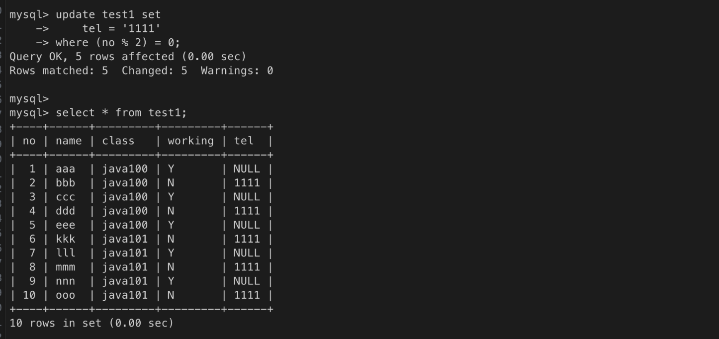 ㄴ 조건을 지정하지 않으면, 모든 데이터에 대해 변경함