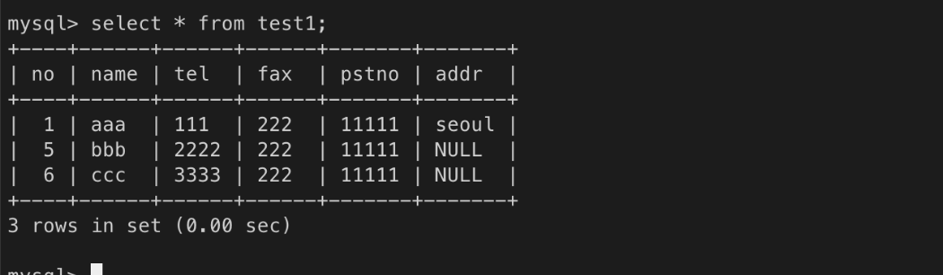 ㄴ 다른 터미널을 띄워서 확인 시 삭제한 데이터가 실제로는 삭제되지 않음(commit 을 아직 안 했기 때문)