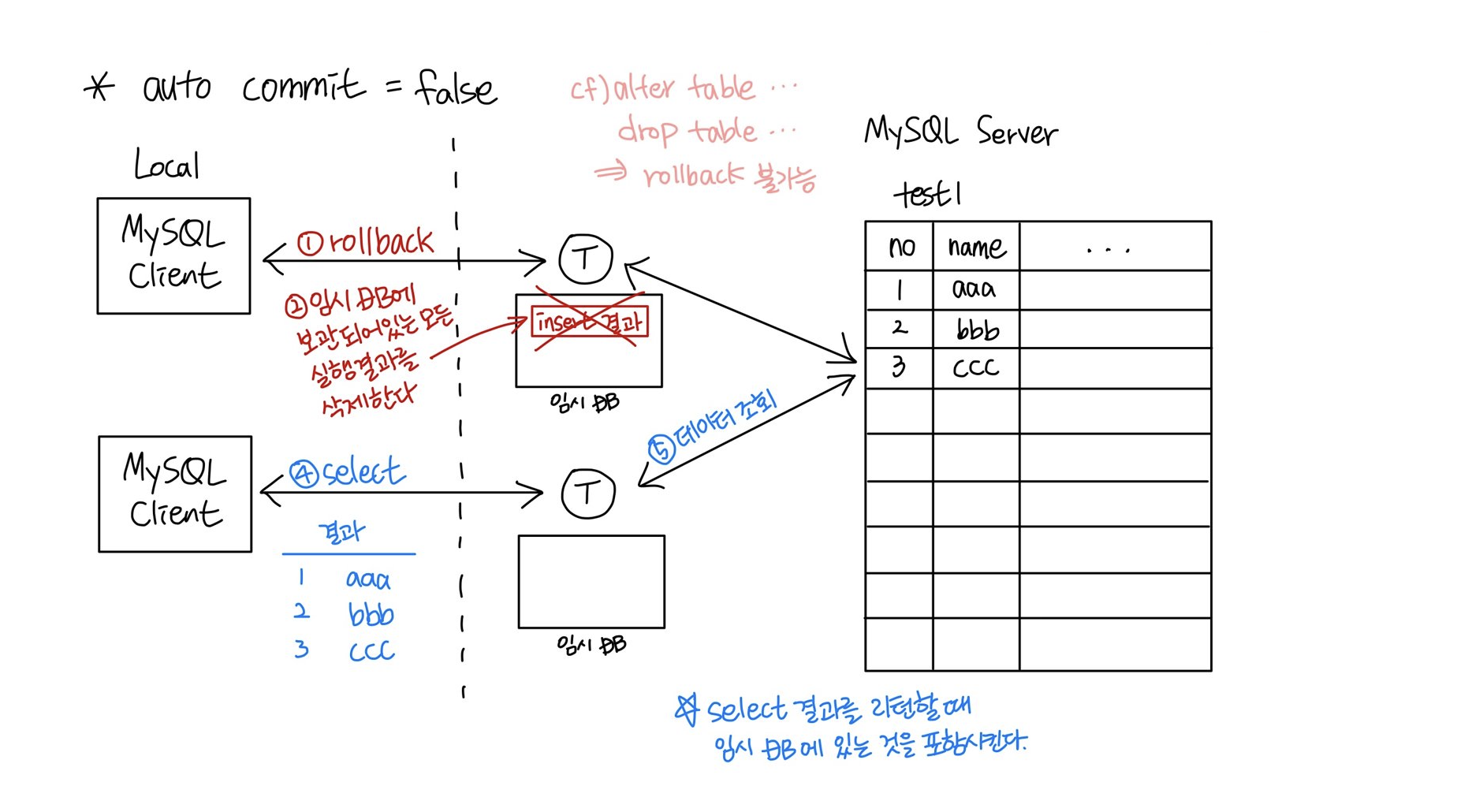 ㄴ rollback 을 할 경우 추가 마지막 commit 이후에 수행한 insert 작업은 취소됨