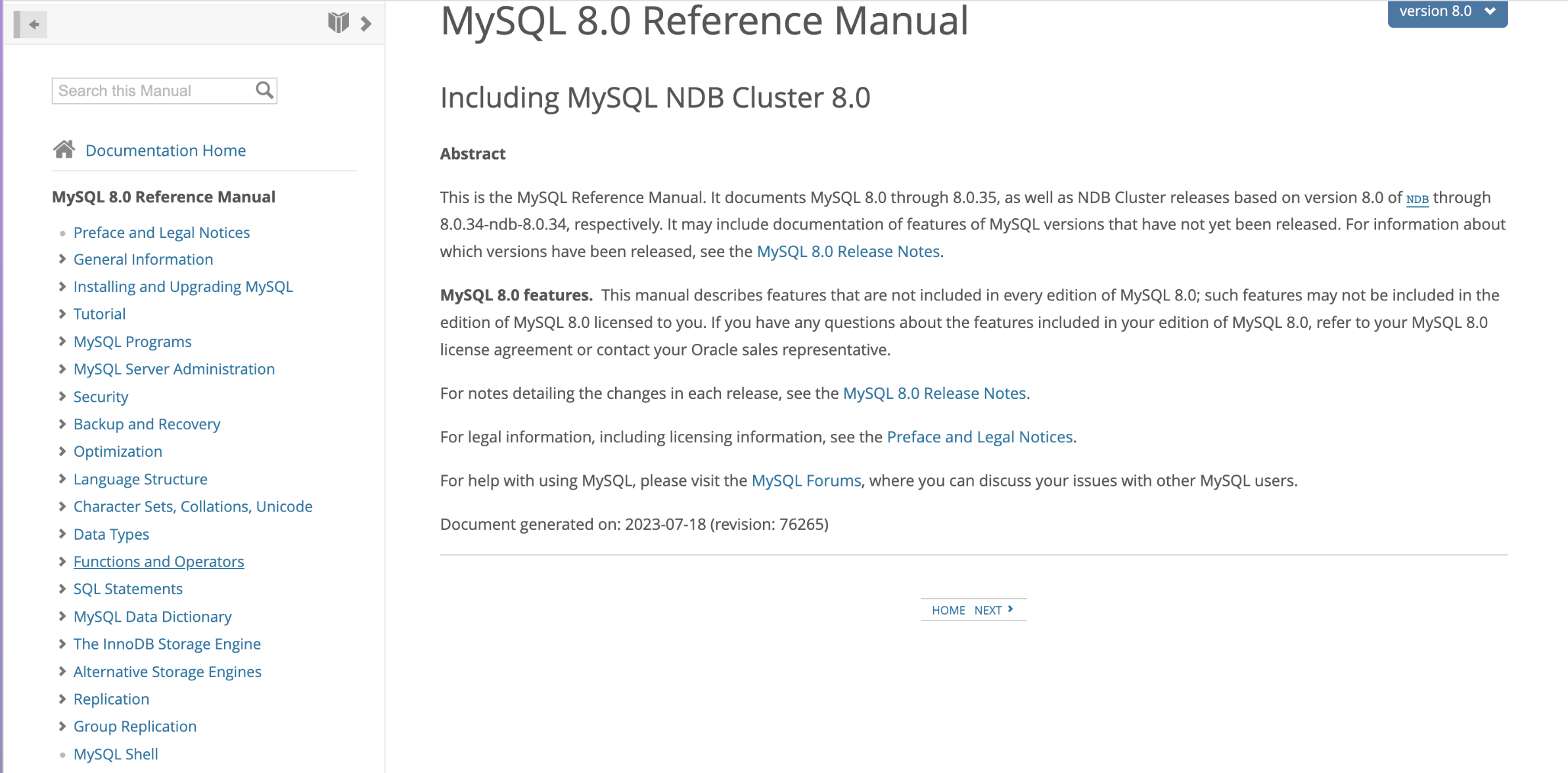 MySQL 공식 문서 확인