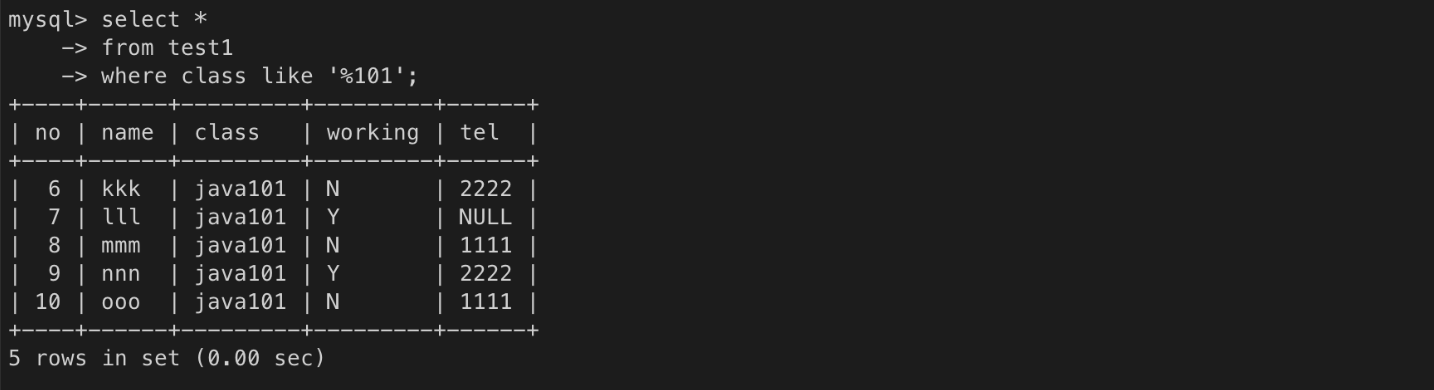 class 이름이 101로 끝나는 반의 모든 학생 조회하기
