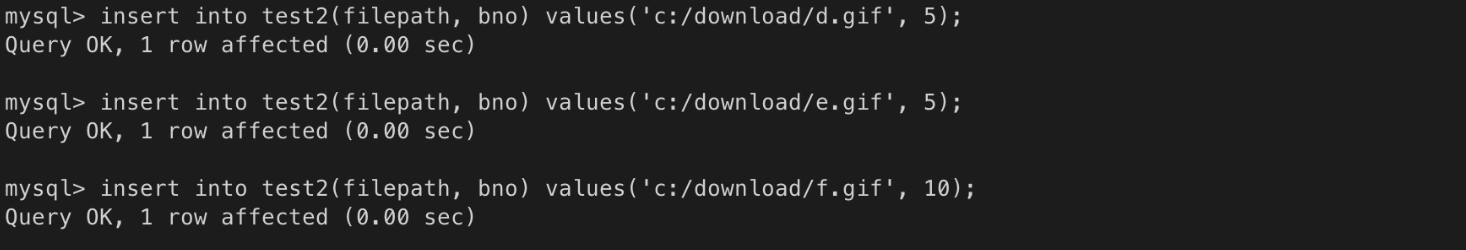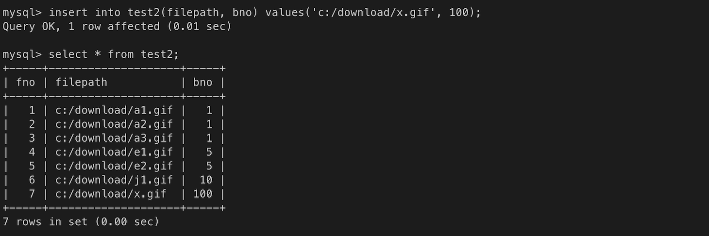 ㄴ 5번, 10번 게시물은 존재하기 때문에 첨부파일 데이터를 입력할 수 있다.
