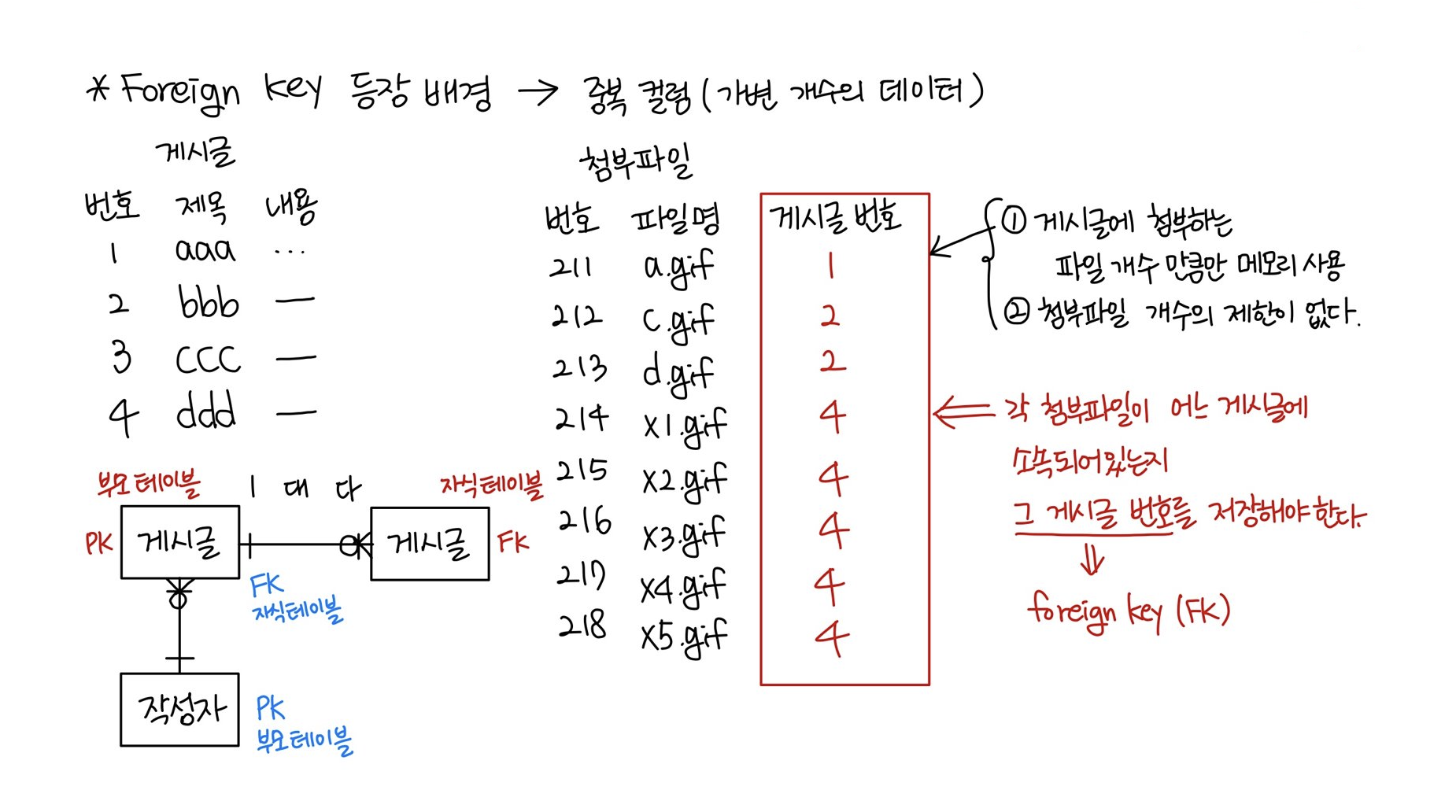 - 따라서 최대 5개의 첨부 파일만 테이블에 저장할 수 있다.
