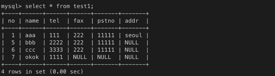 => 그러나 결과의 컬럼 개수와 insert 하려는 컬럼 개수가 같아야 한다.