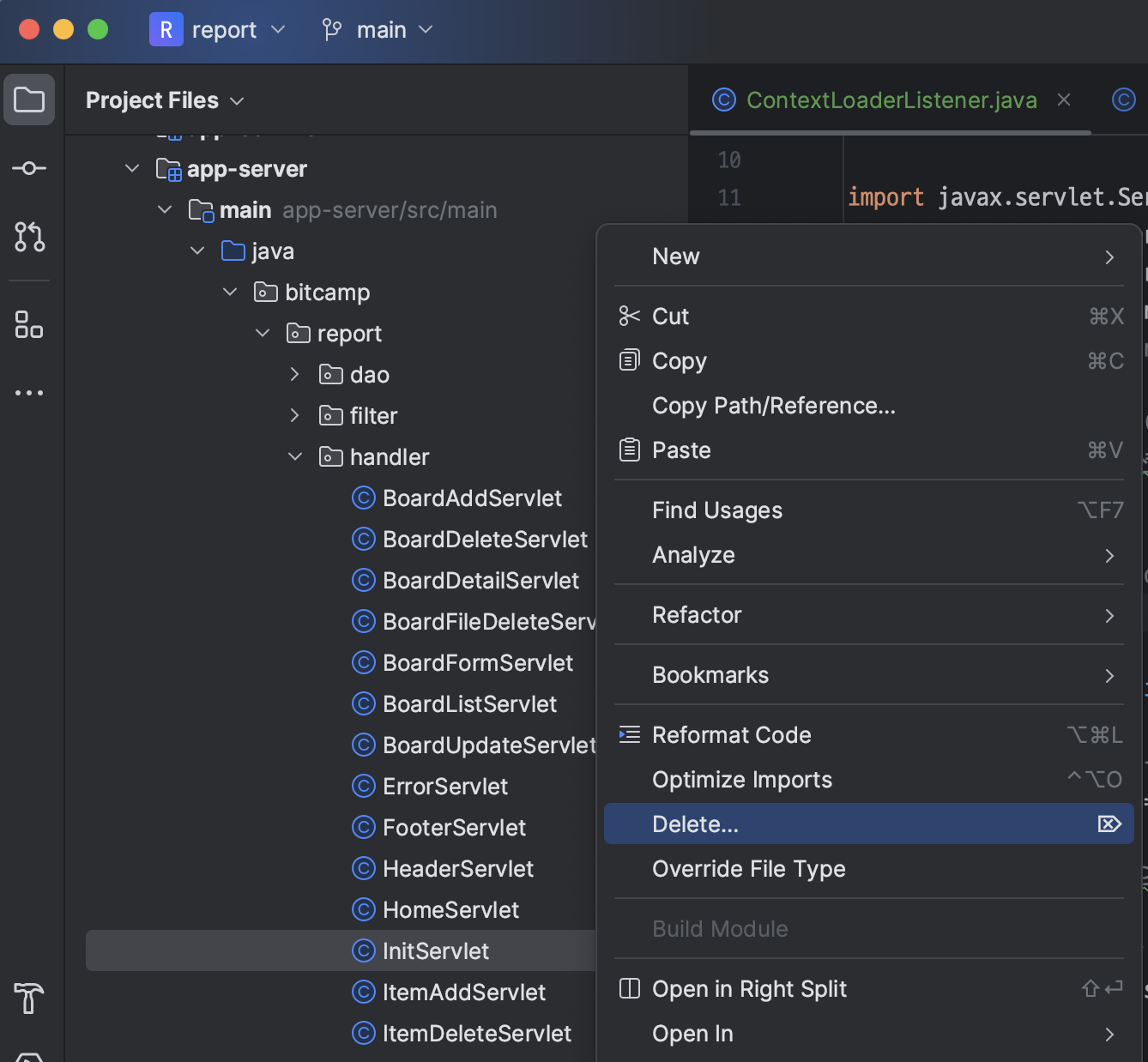 ㄴ InitServlet.java 파일 삭제