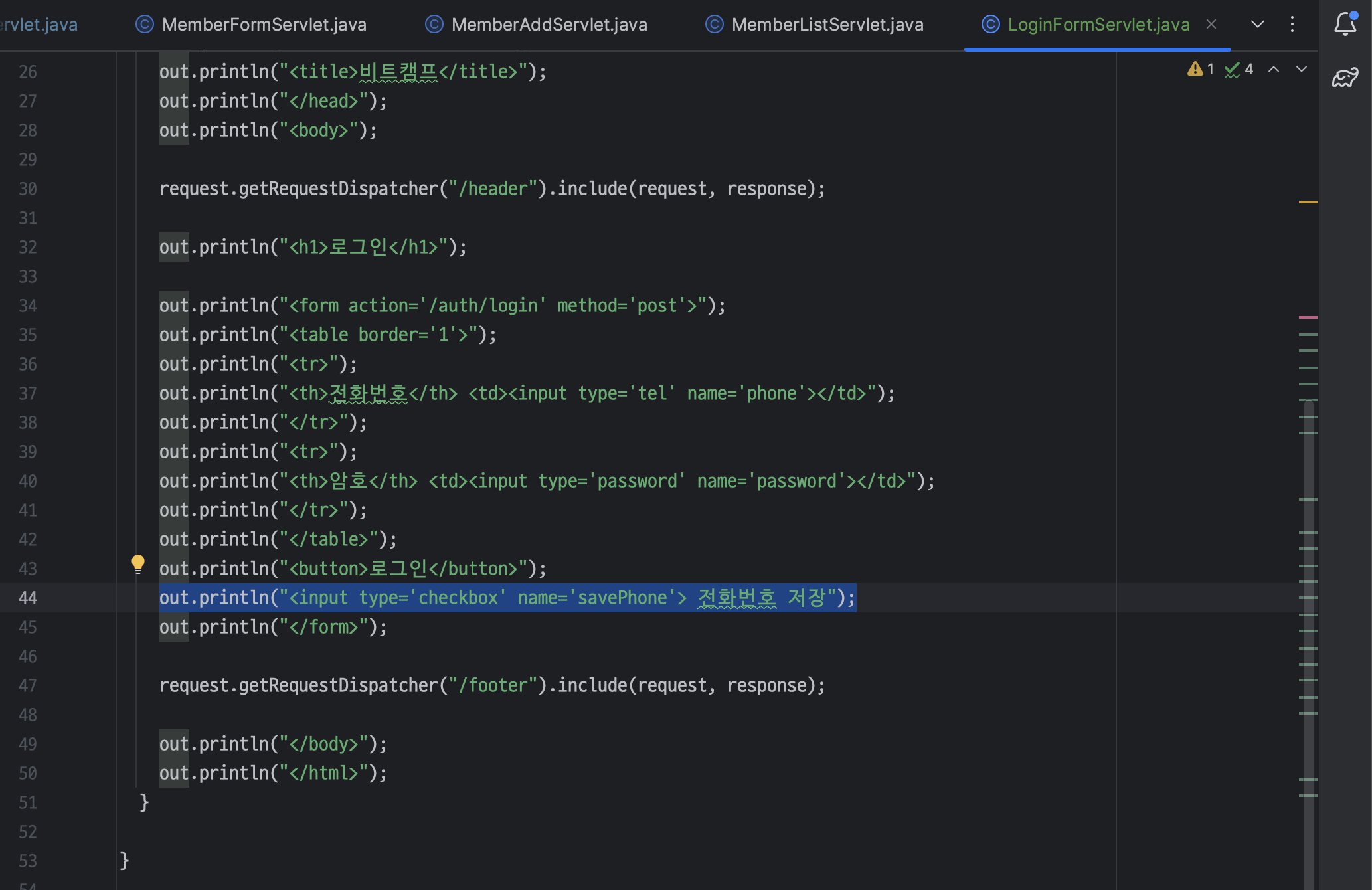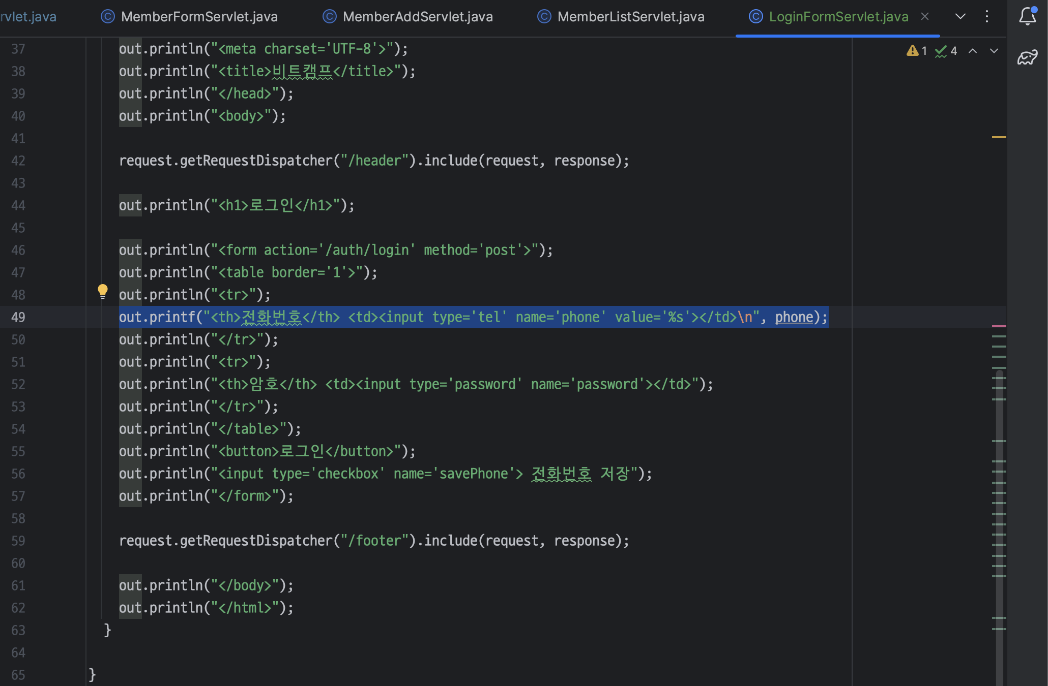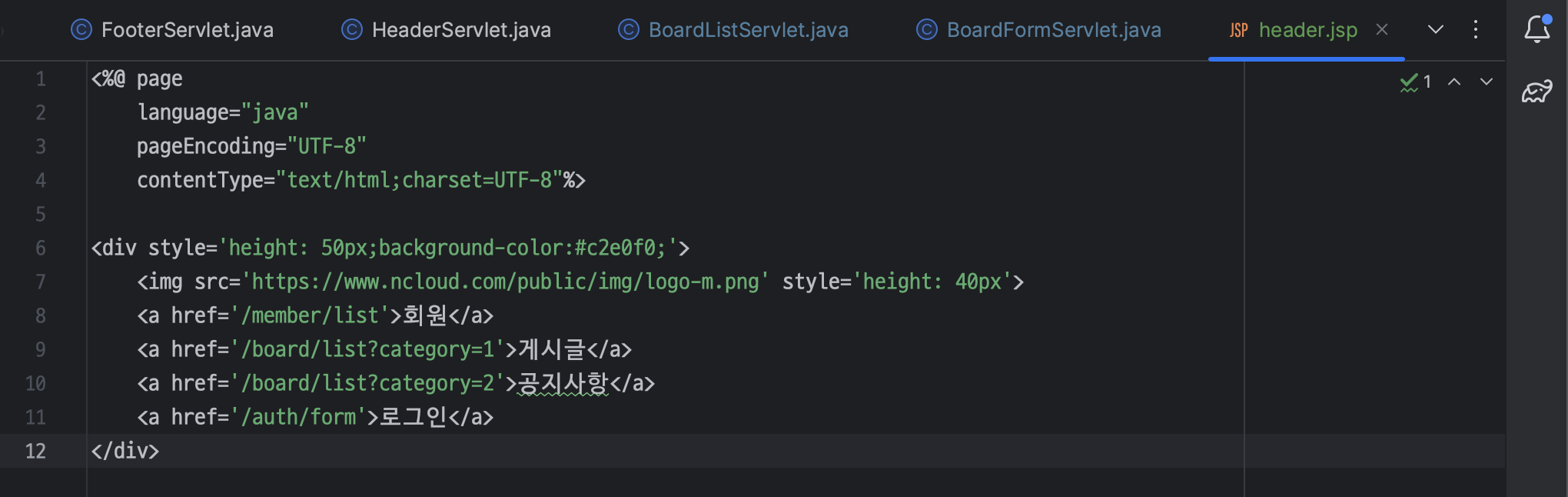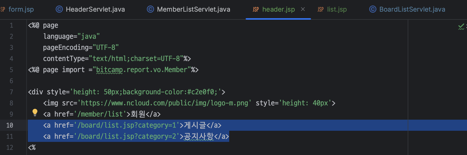 ㄴ LoginFormServlet 은 BoardFormServlet 과 다르게 category 가 필요 없음