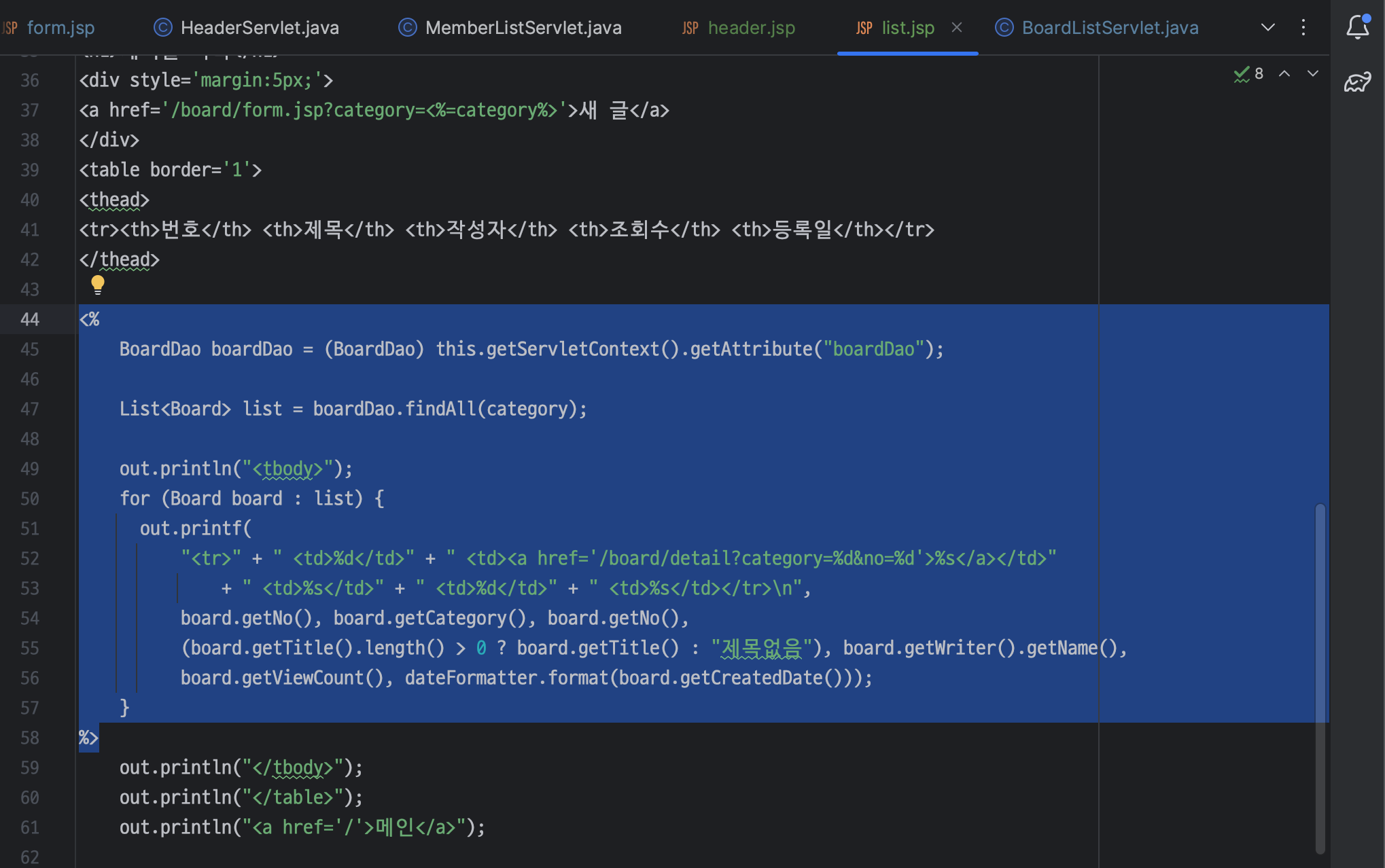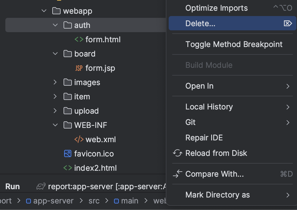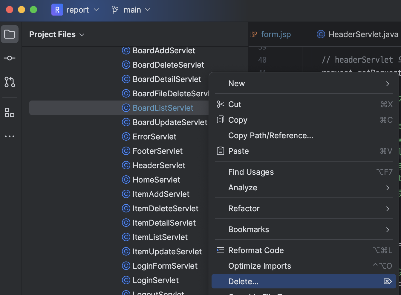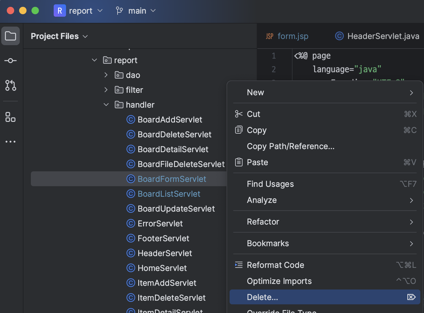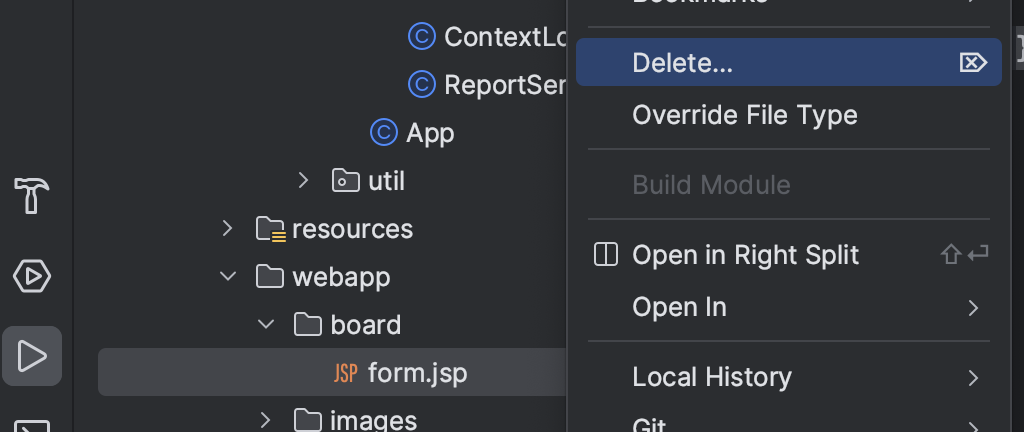 ㄴ BoardFormServlet.java 파일 삭제하기 (jsp 파일로 변경했기 때문)