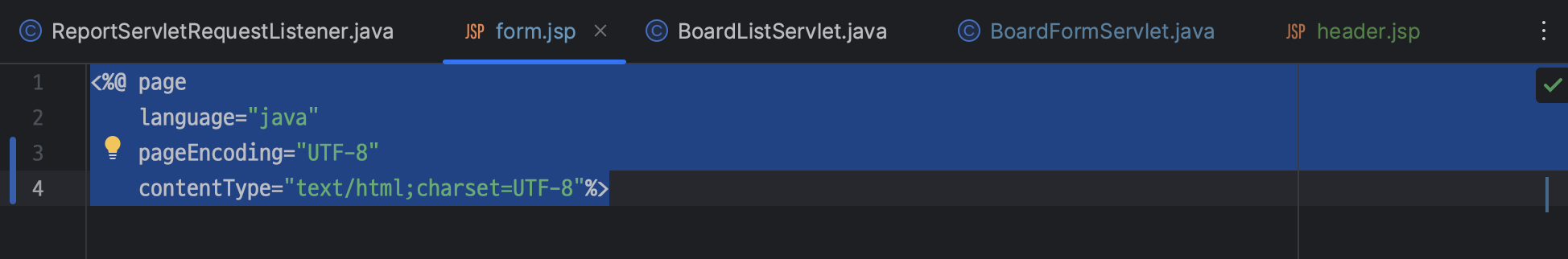 ㄴ 해당 코드는 위쪽의 jsp 설정인 directive element 에서 설정해주므로 제거