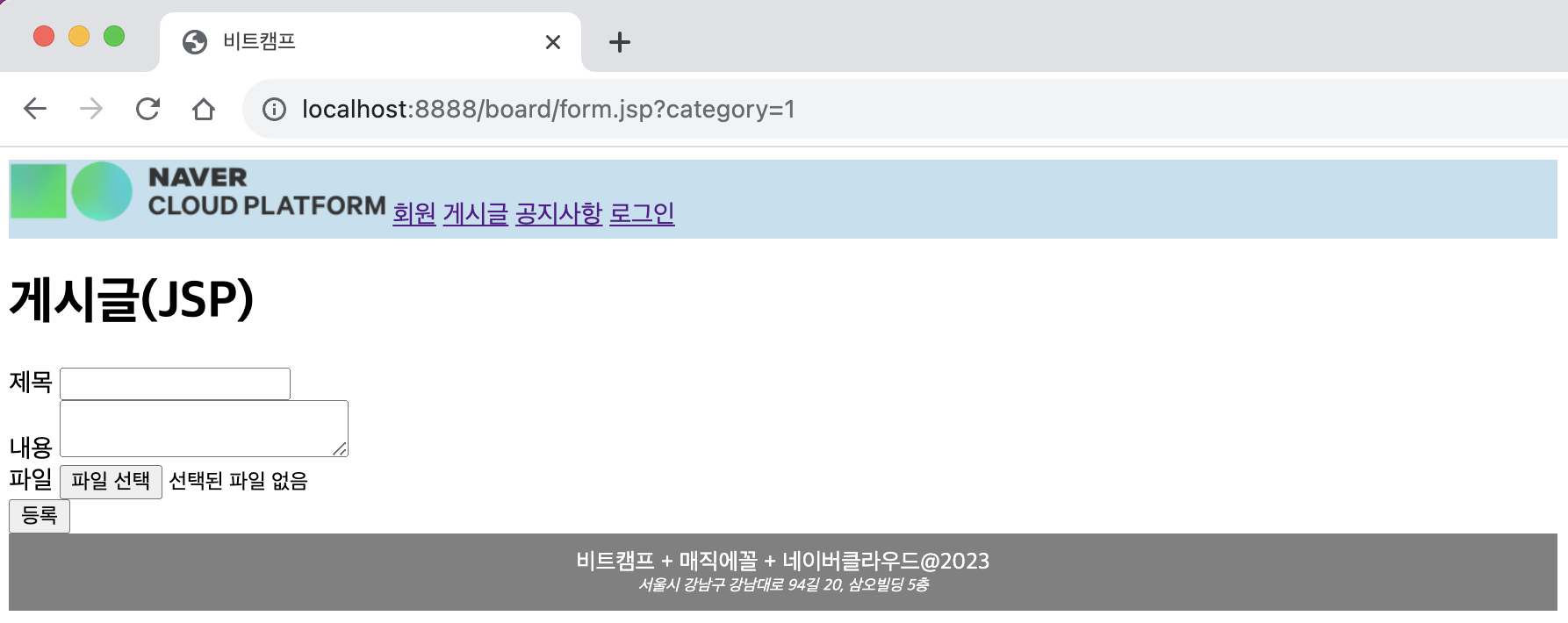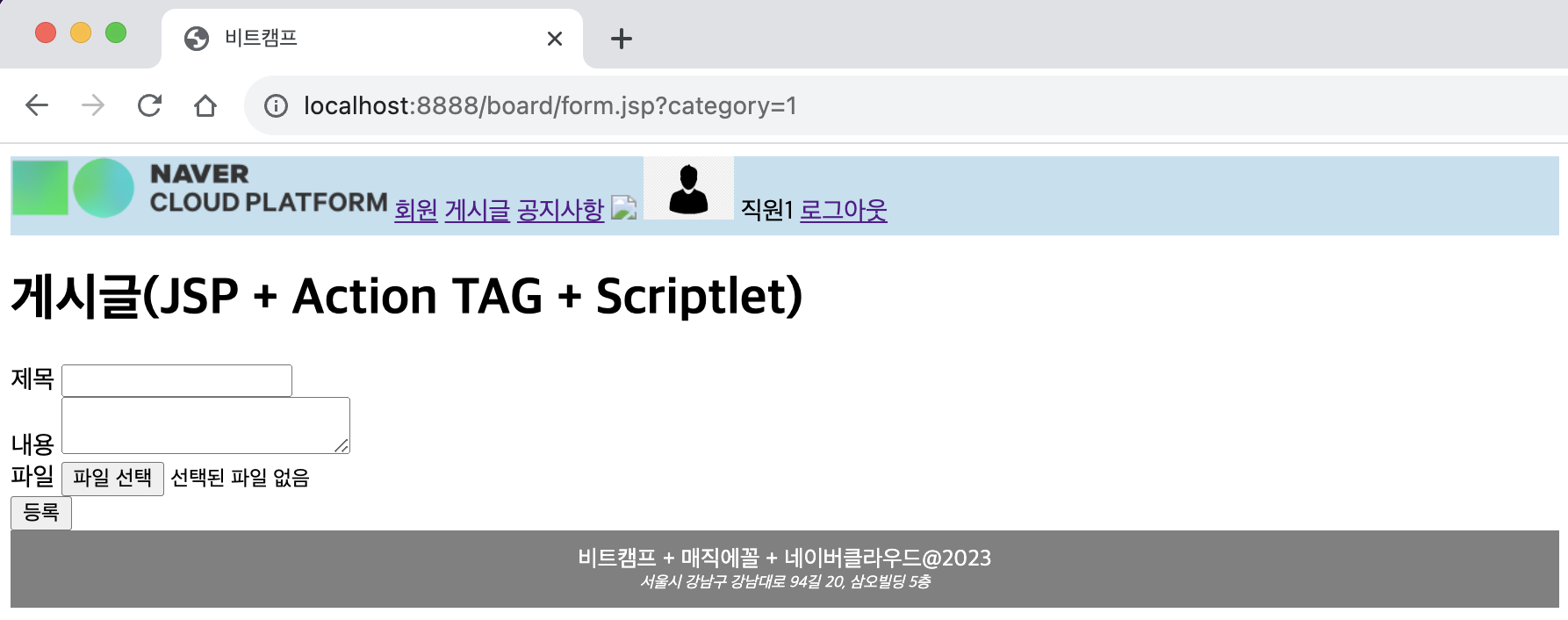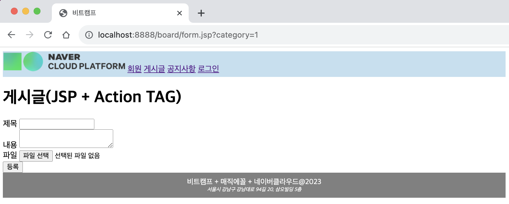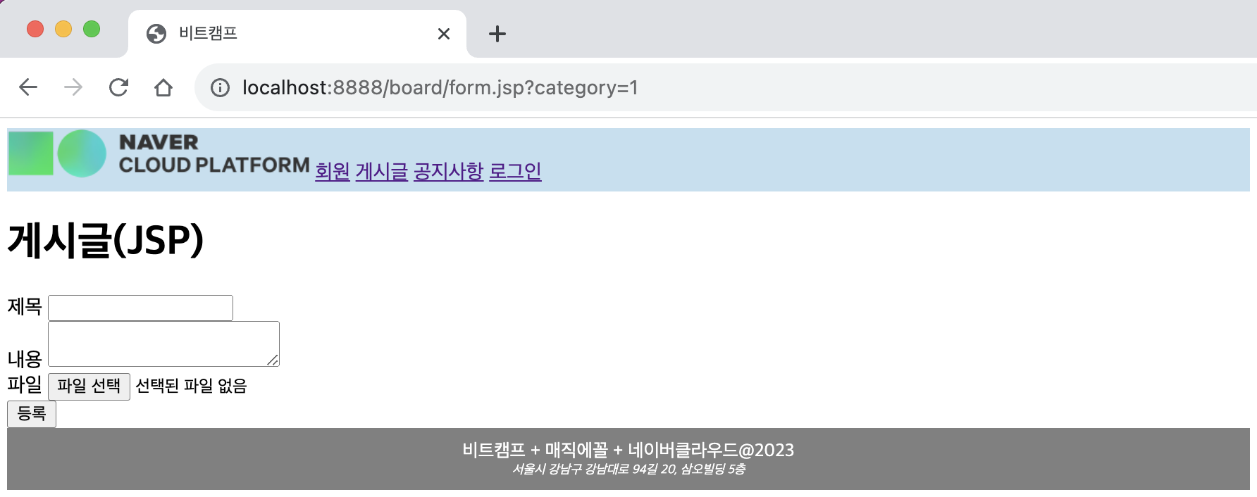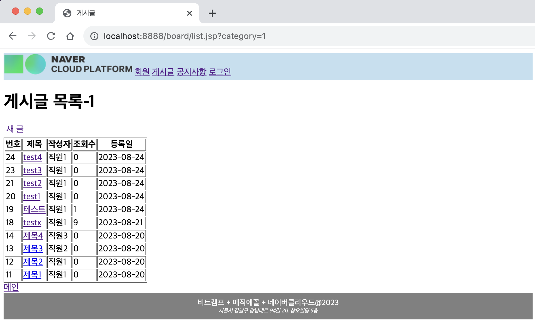 ㄴ 새 글 /board/form.jsp 로 이동됨을 확인