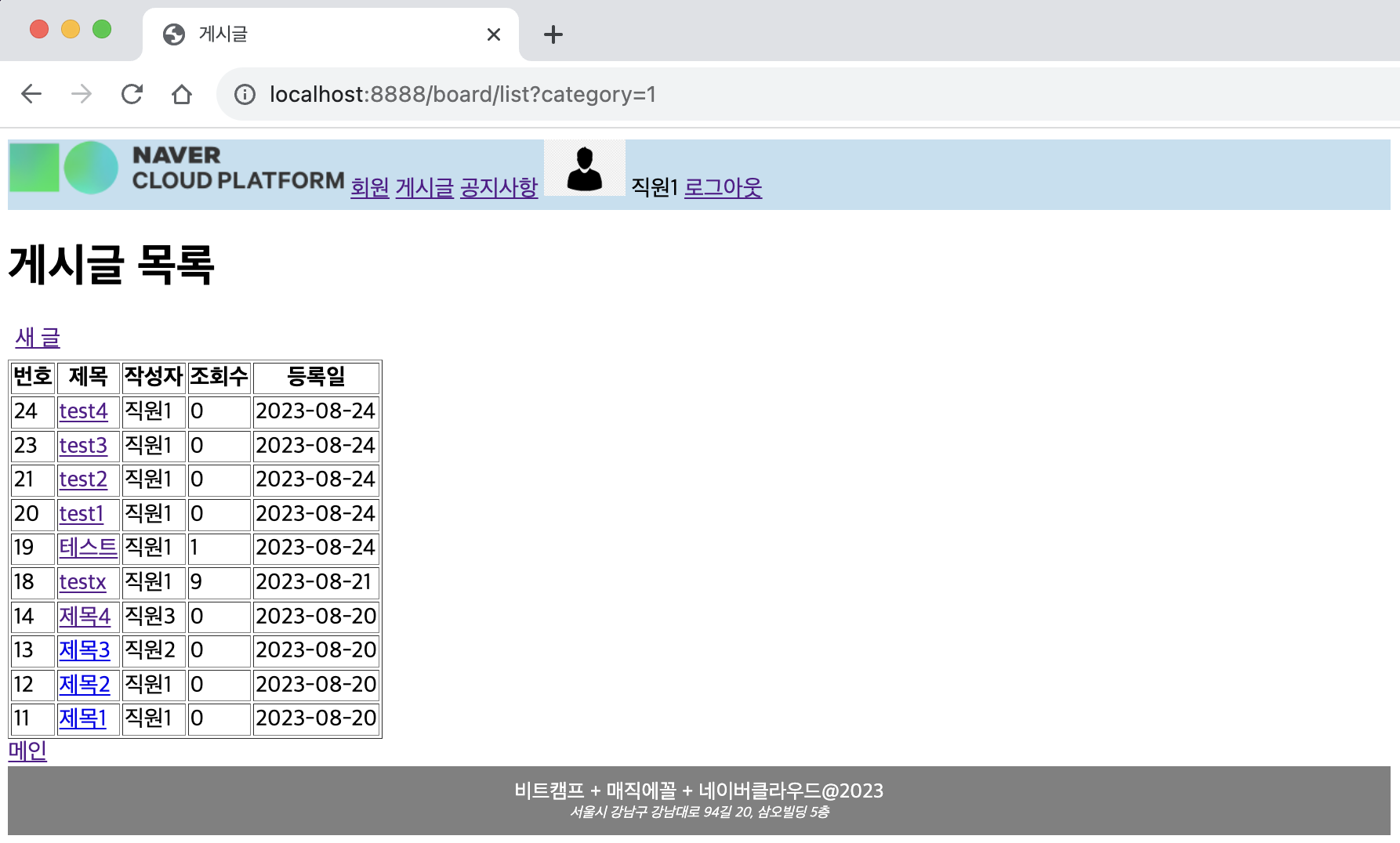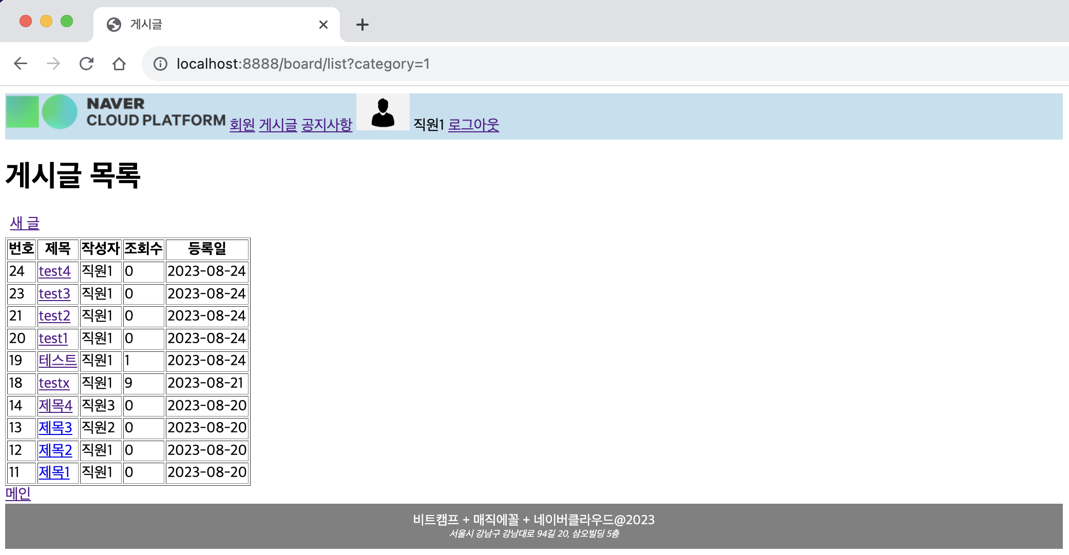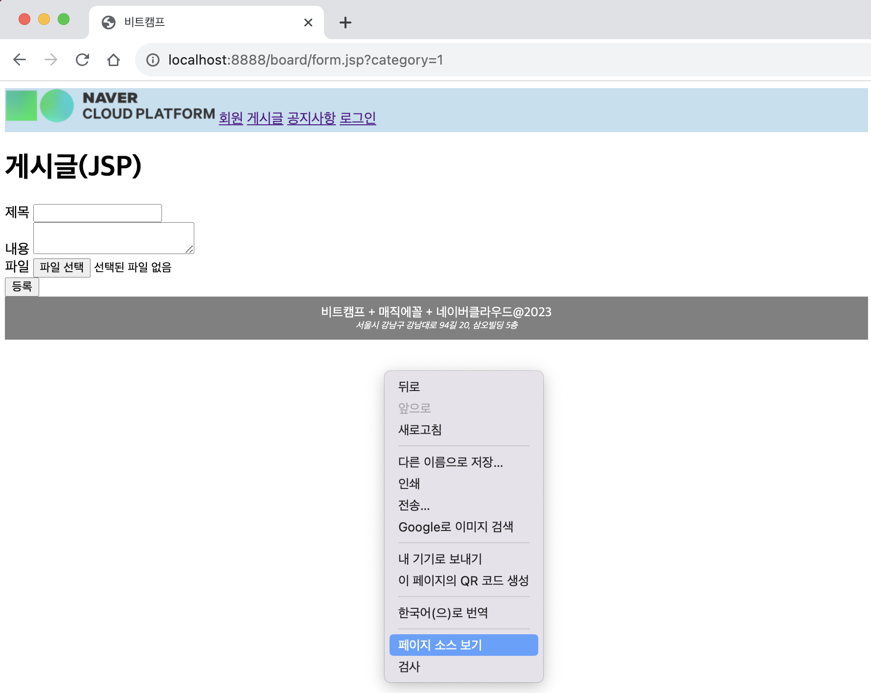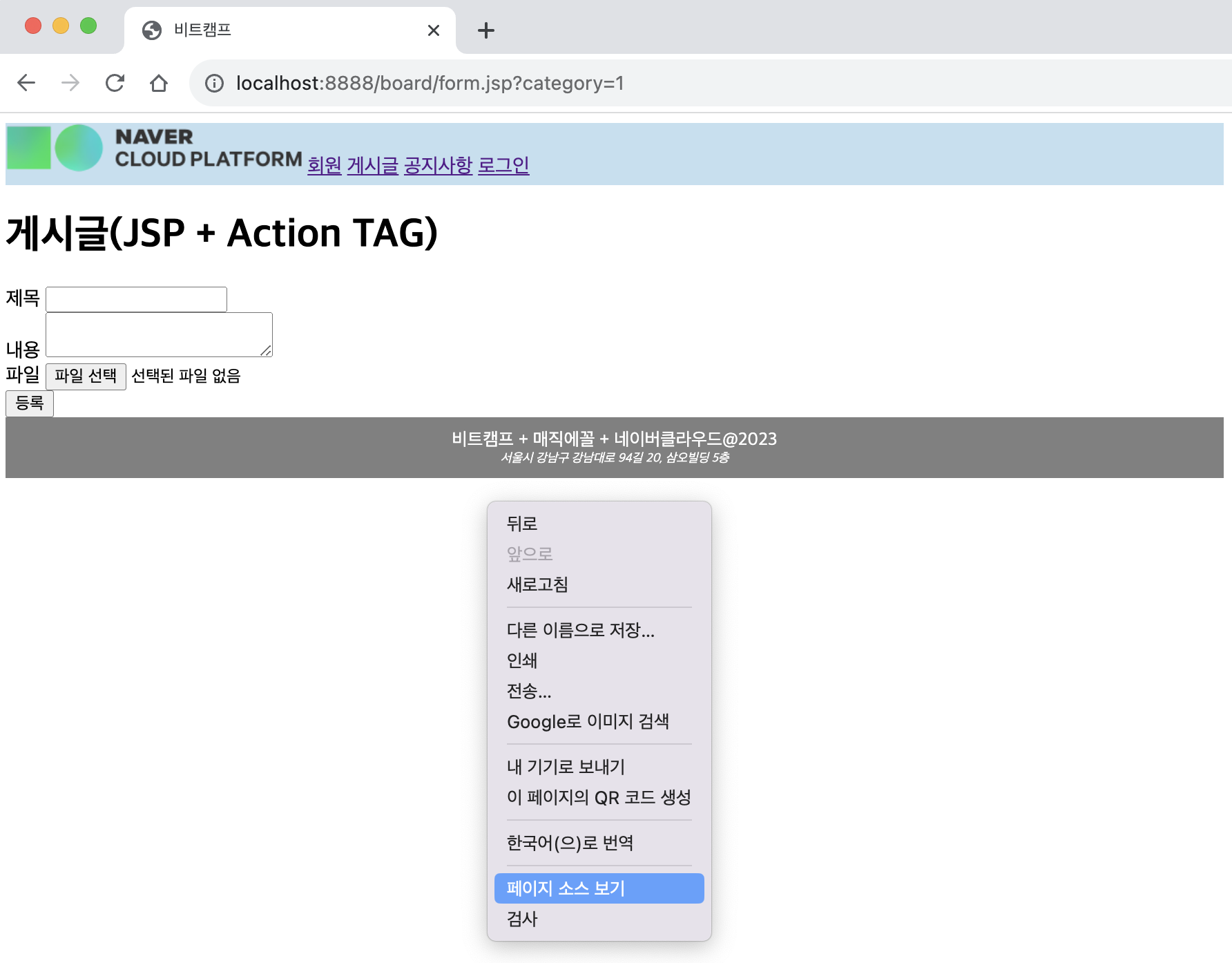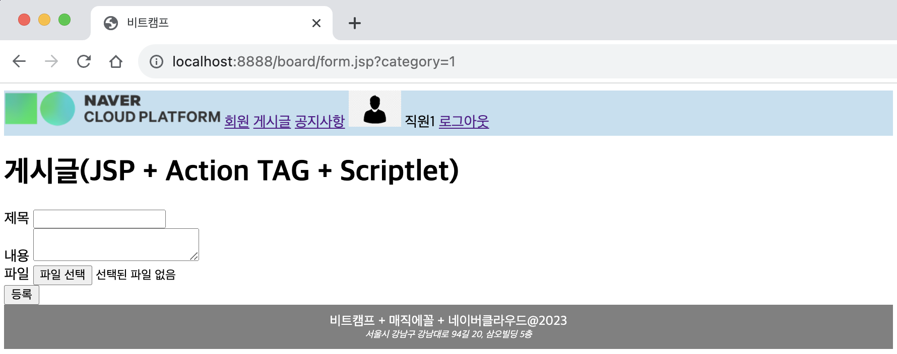 ㄴ 새 글 /board/form.jsp 로 이동됨을 확인