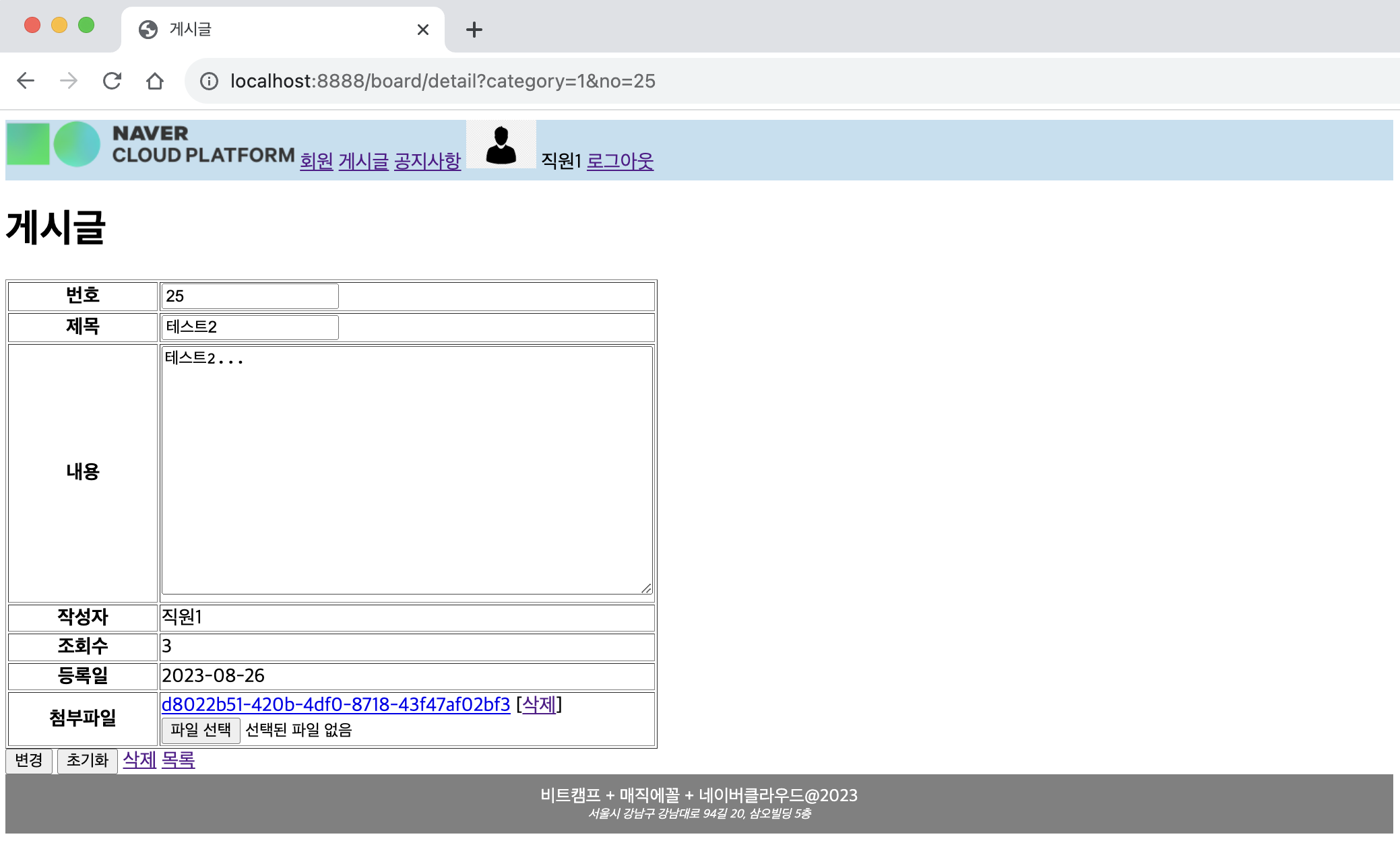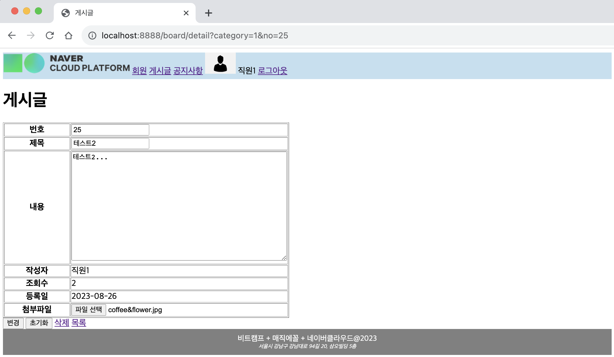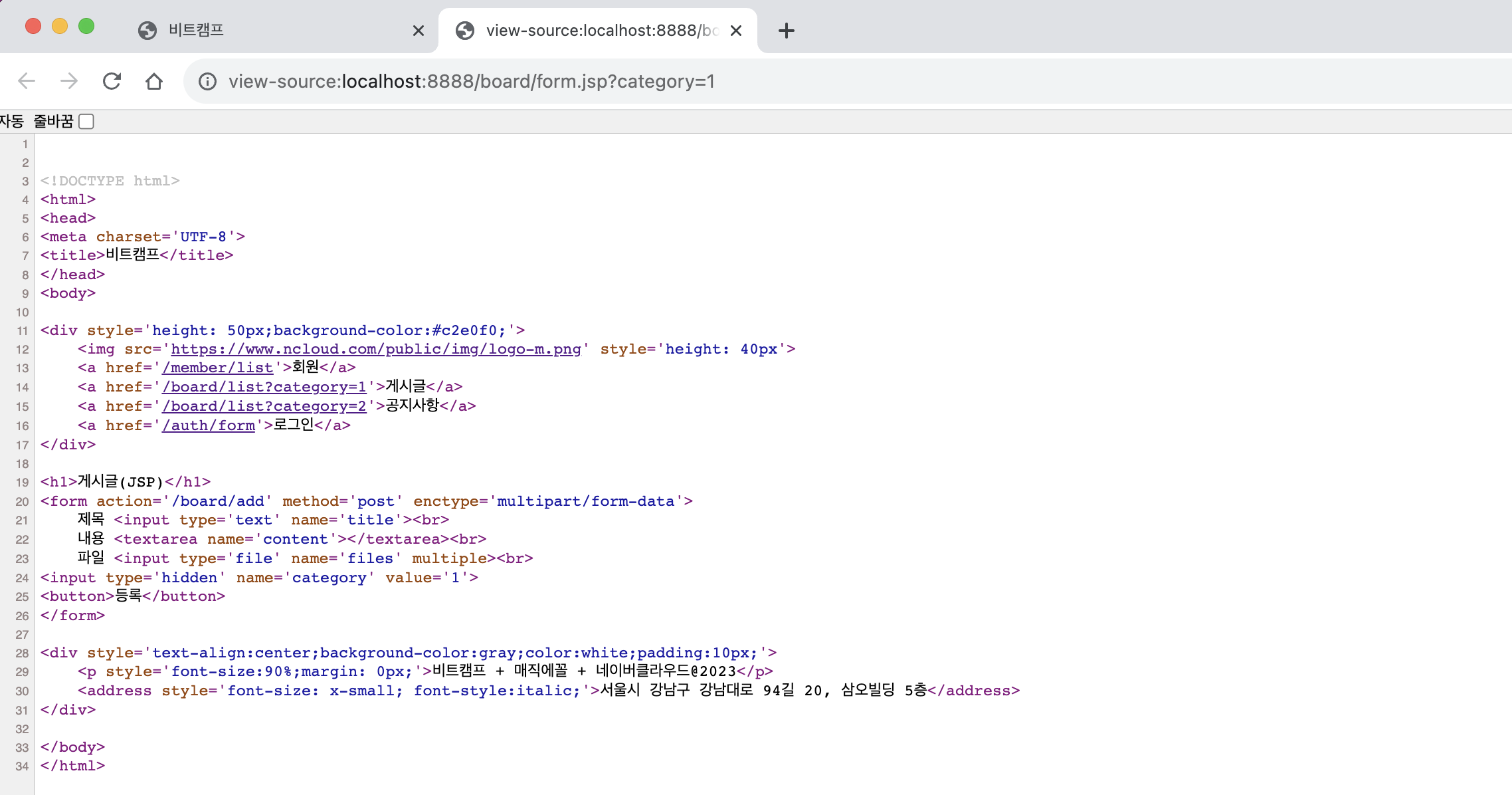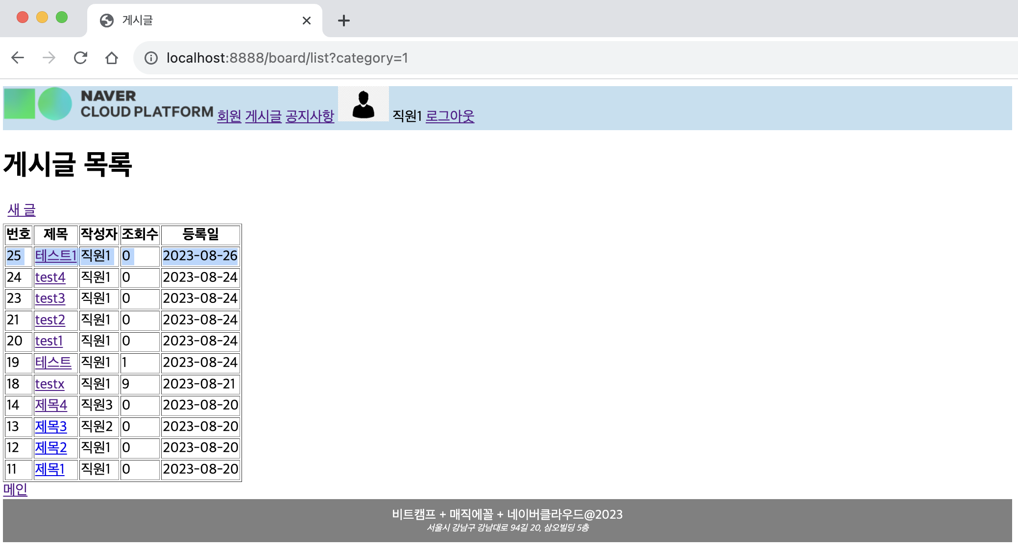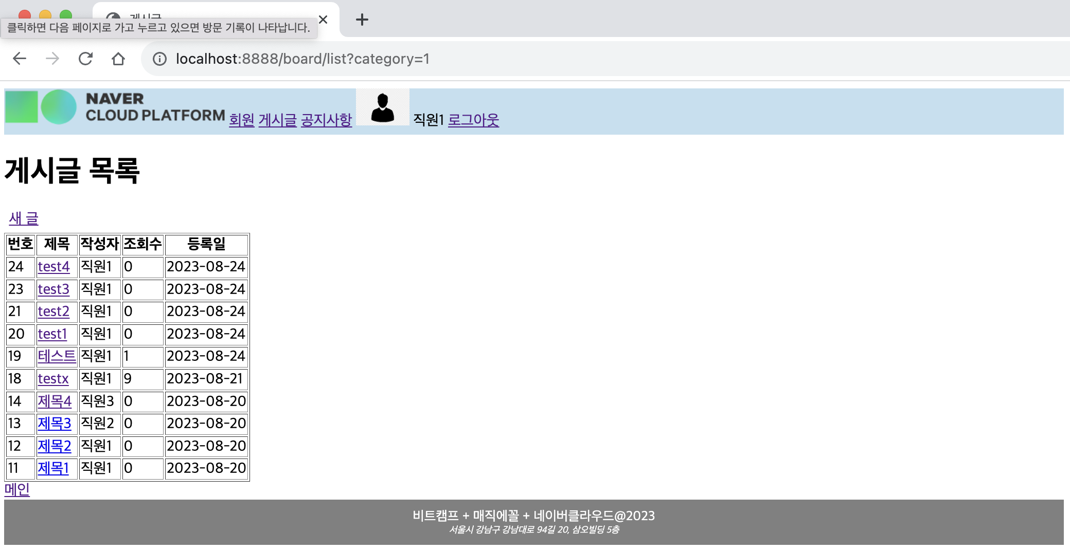 ㄴ 새 글 /board/form.jsp 로 이동됨을 확인