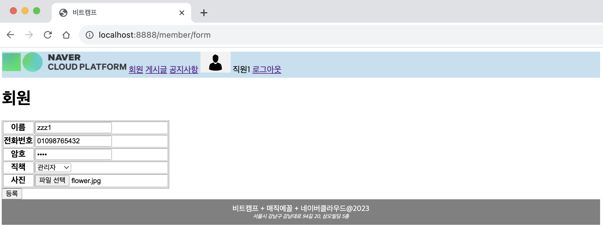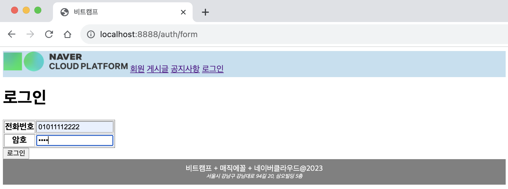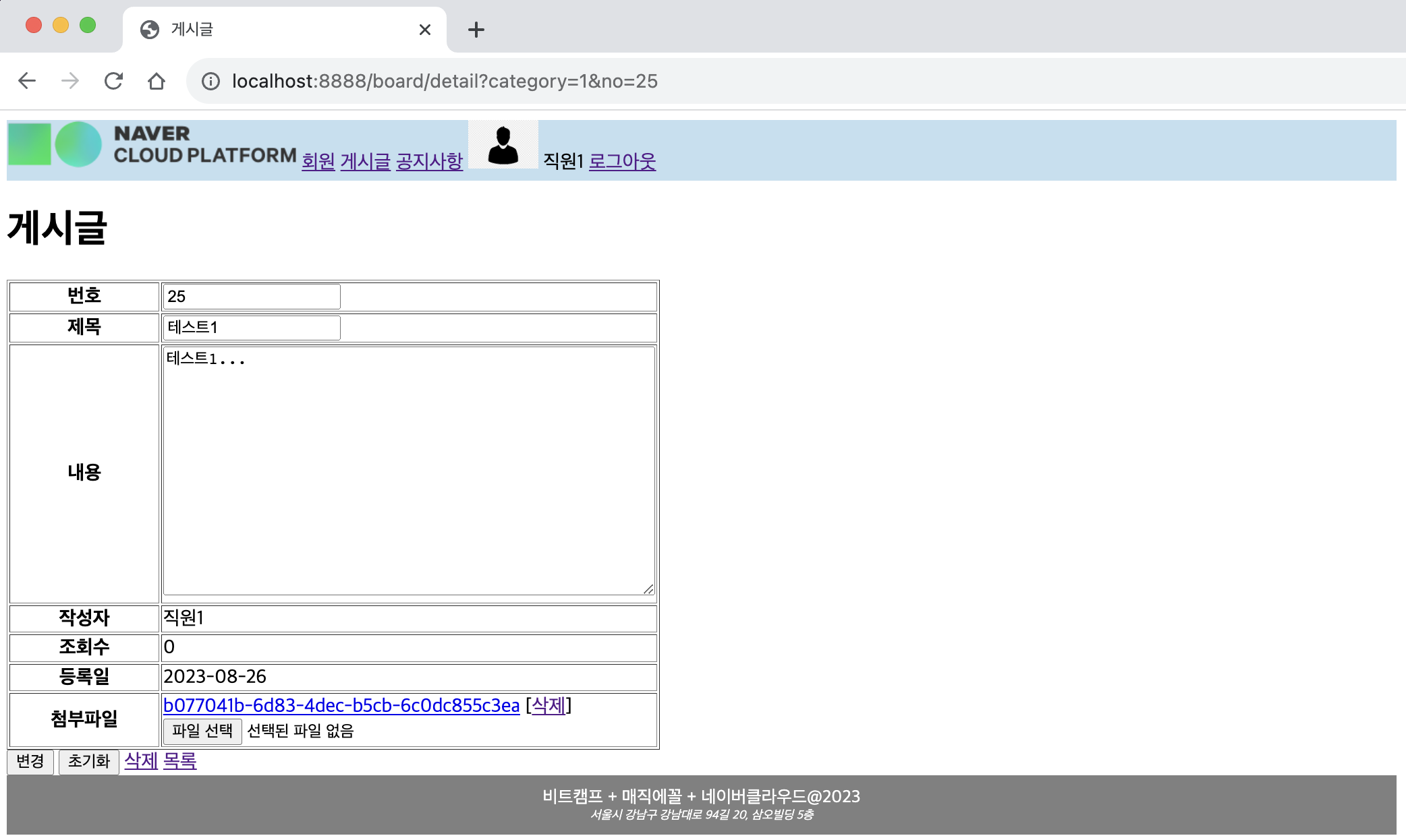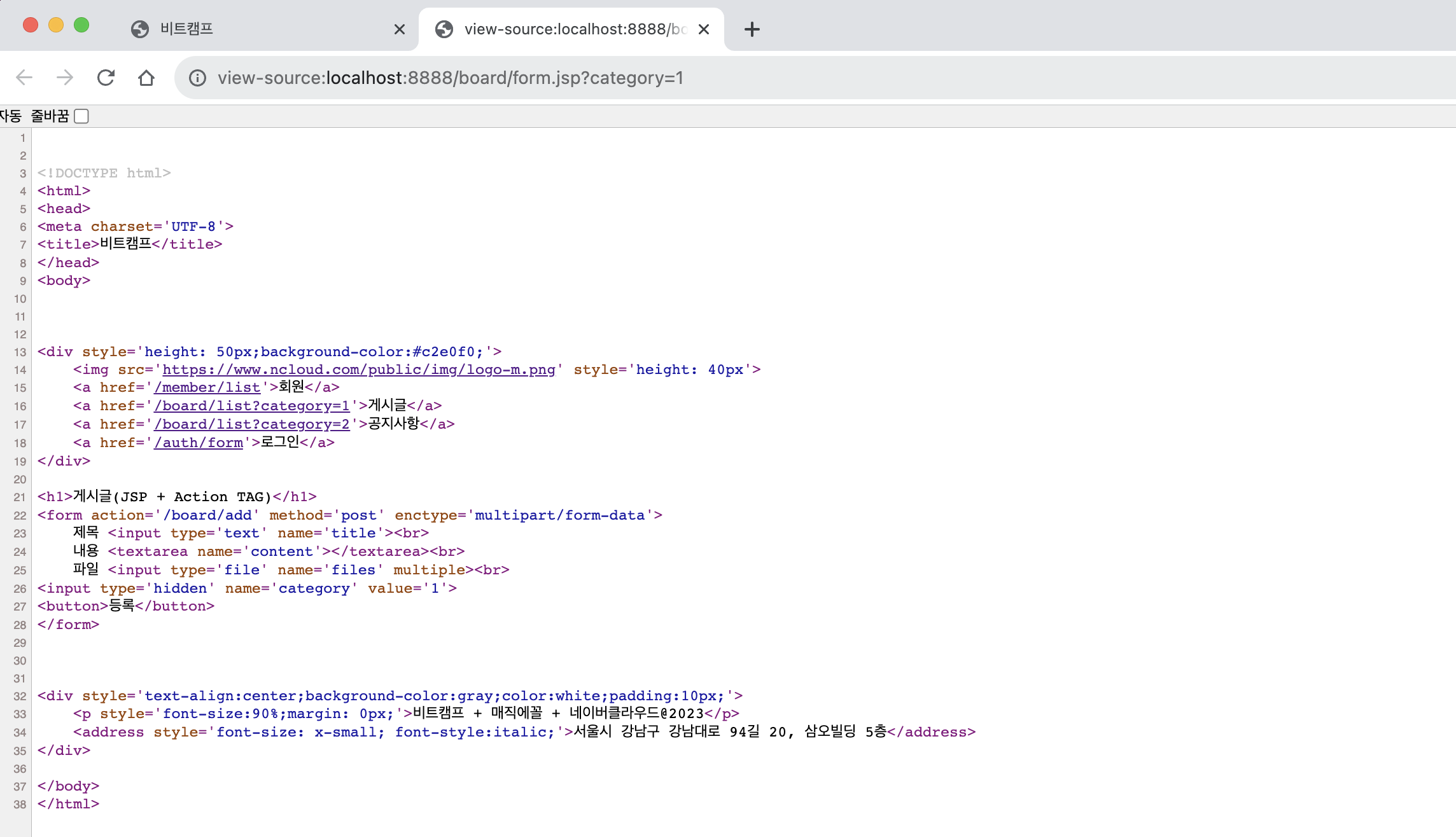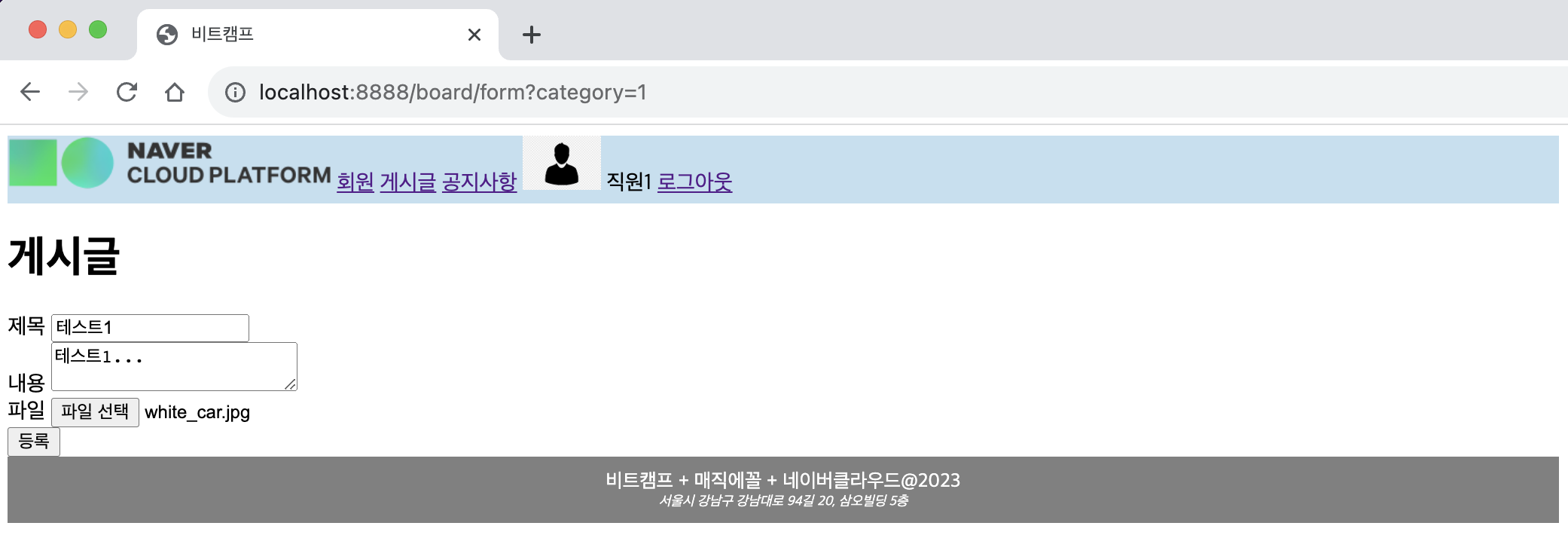 ㄴ 새 글 /board/form.jsp 로 이동됨을 확인