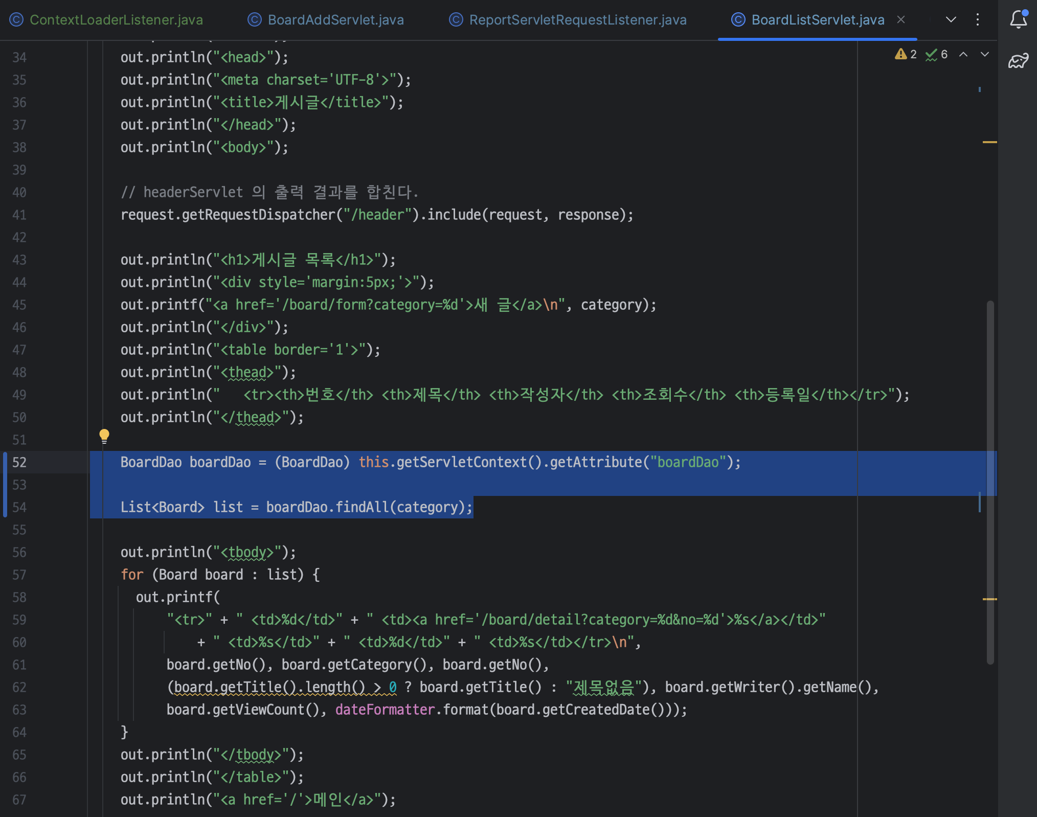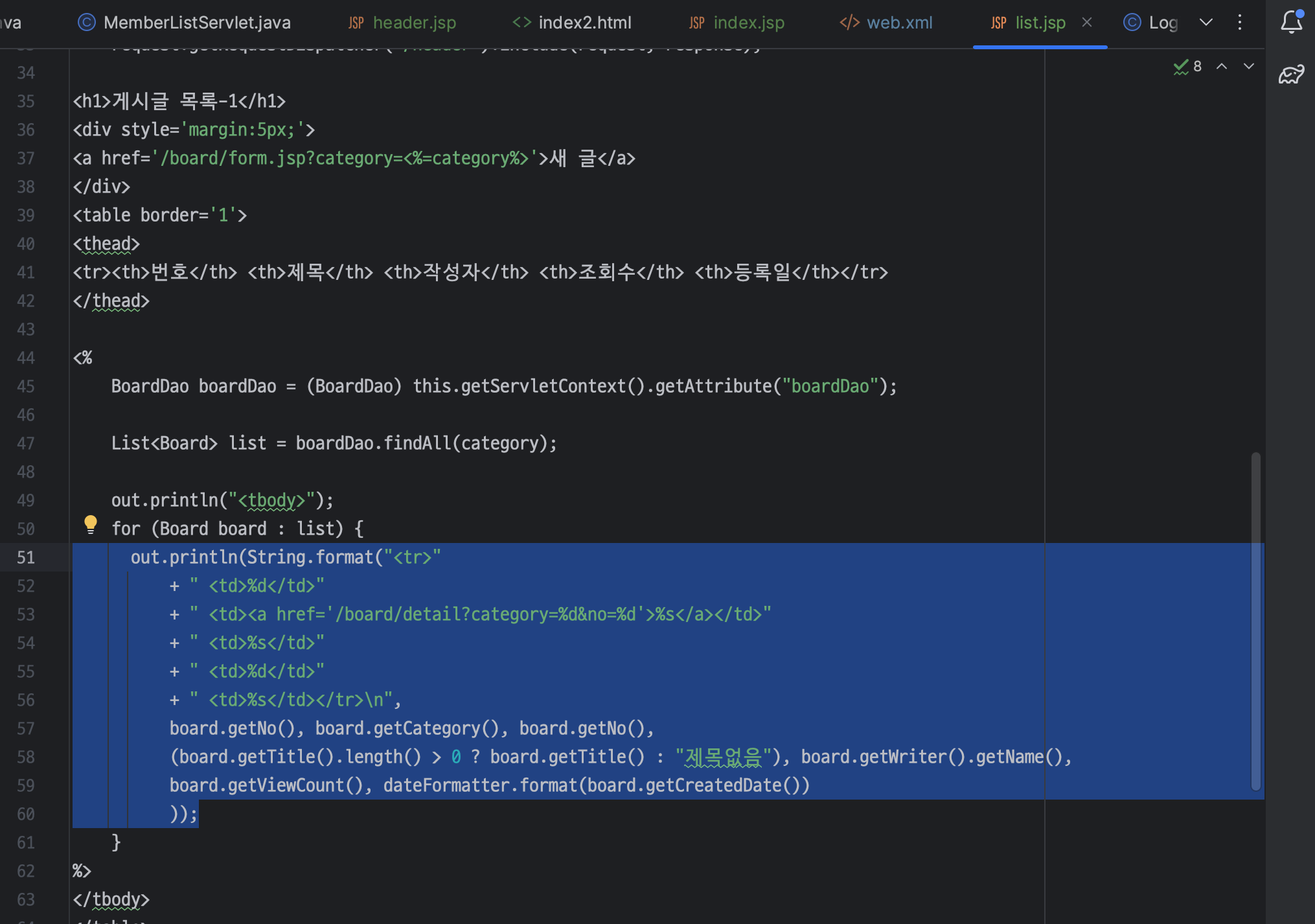 ㄴ BoardListServlet.java 파일은 삭제해주기