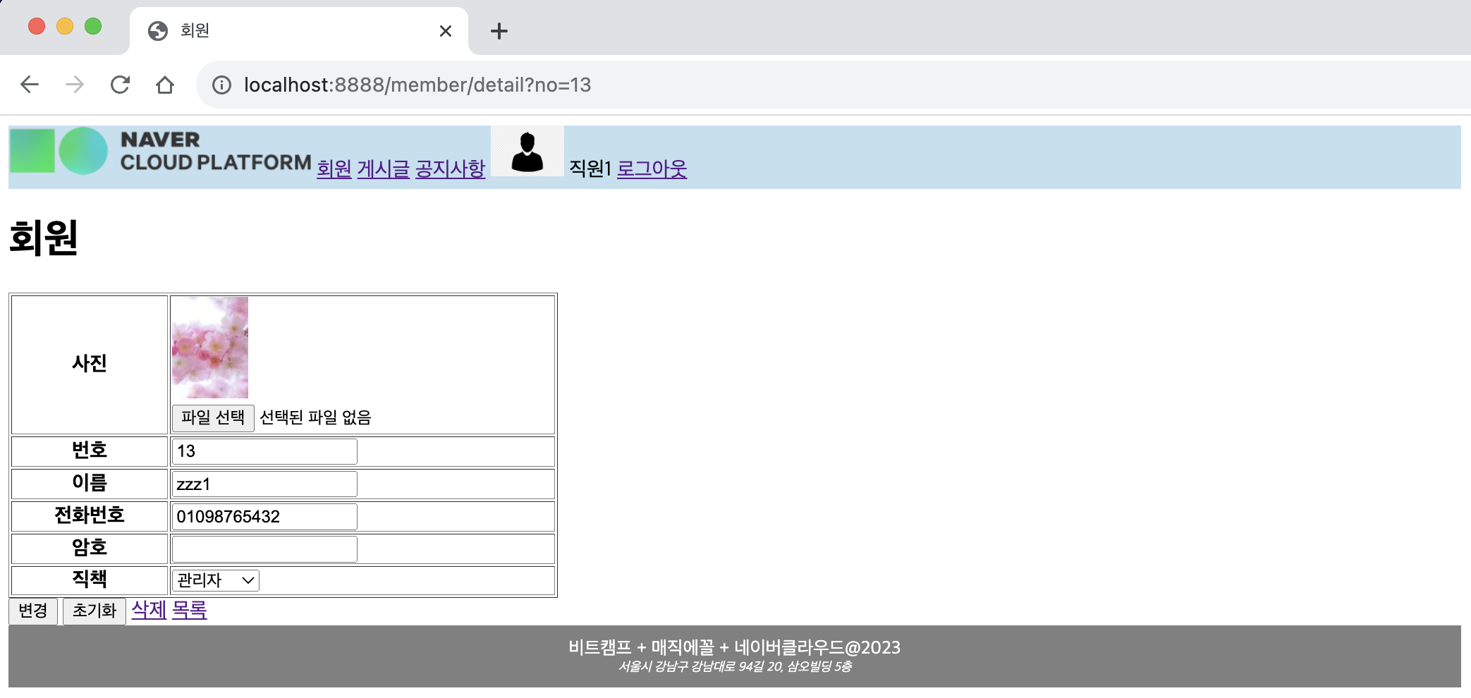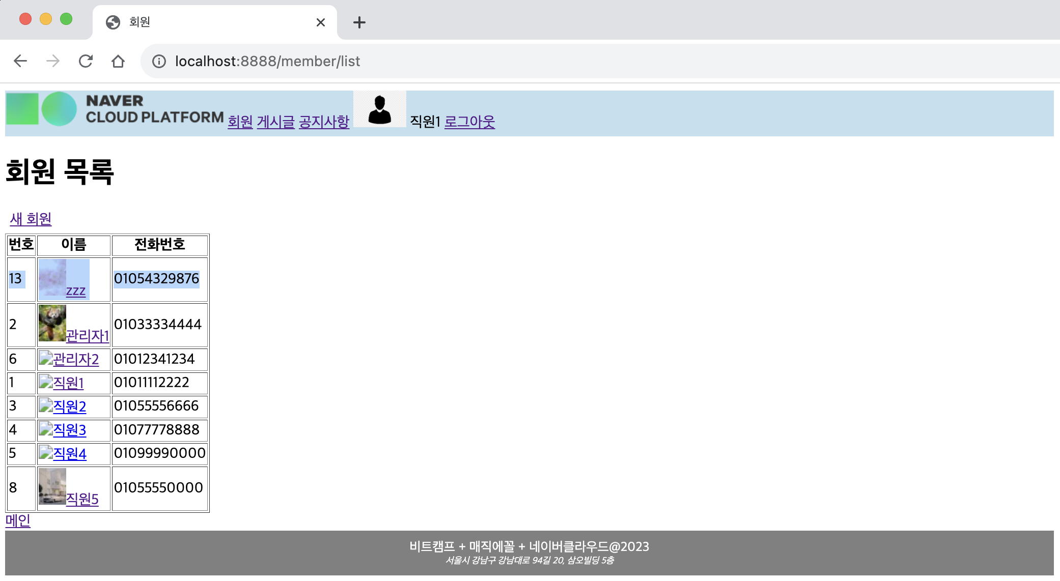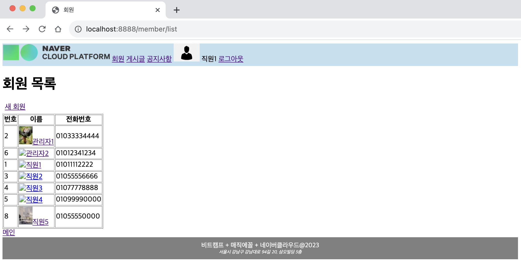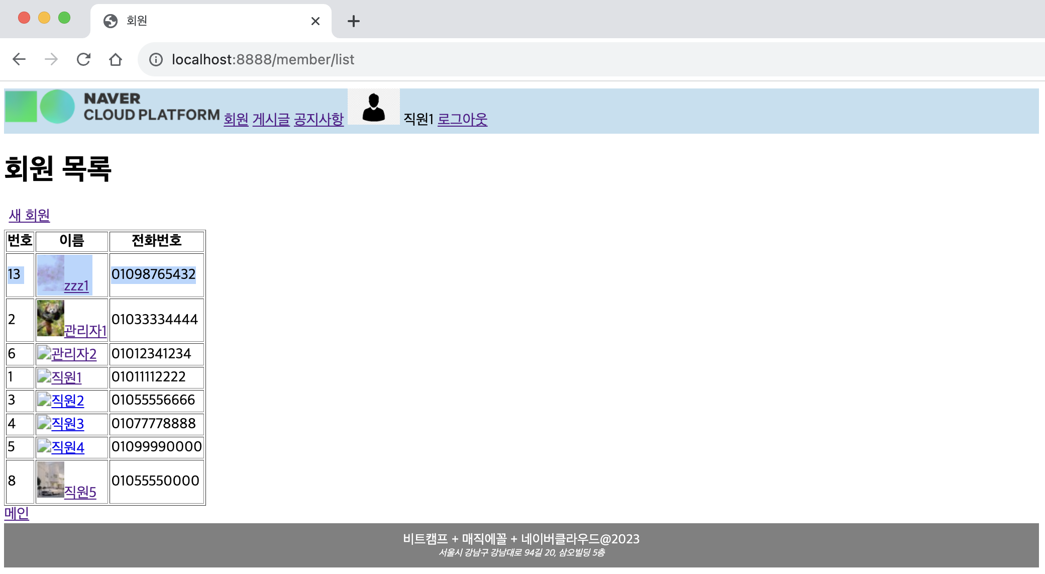ㄴ 생성한 회원의 이름 링크 선택