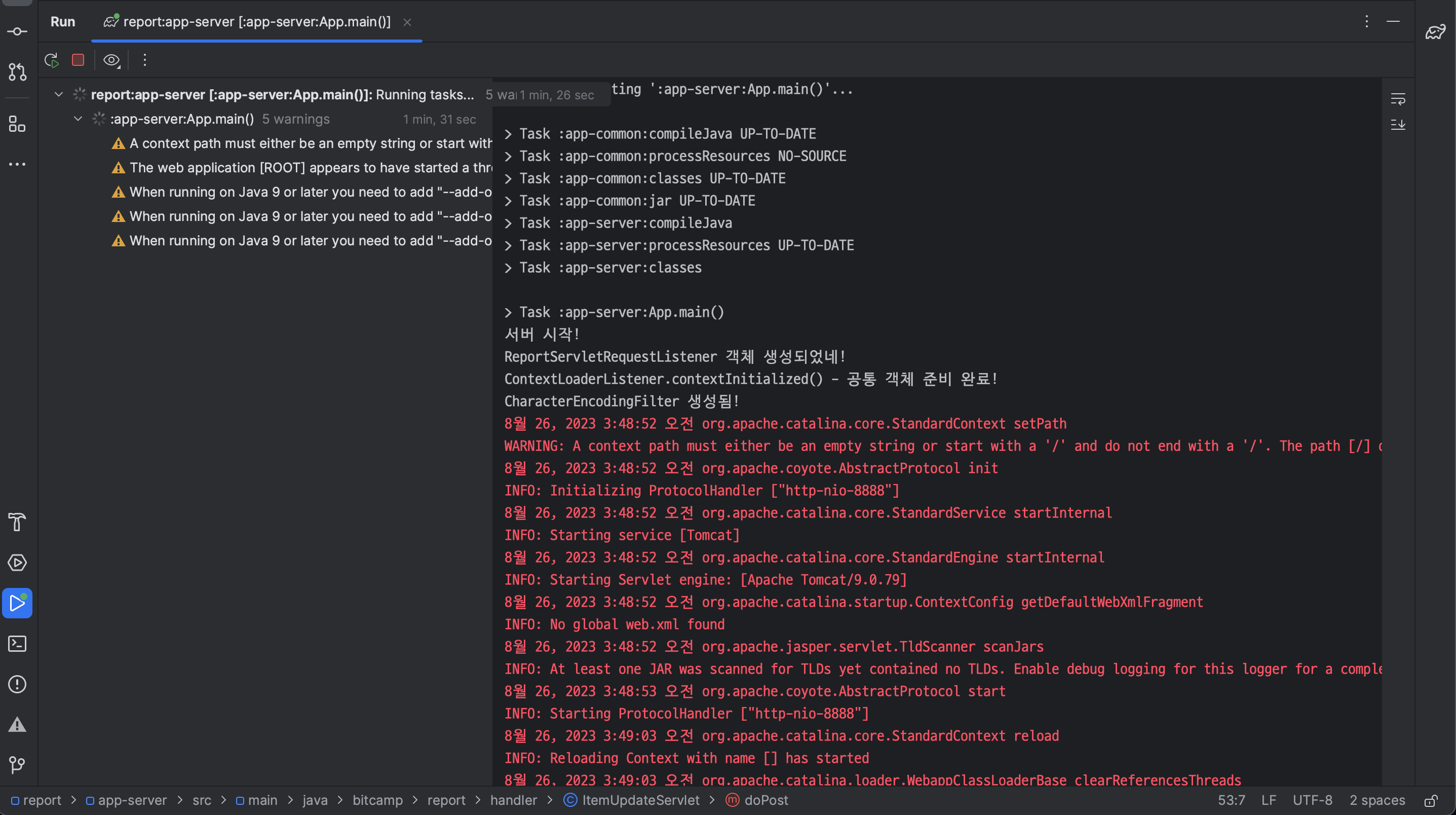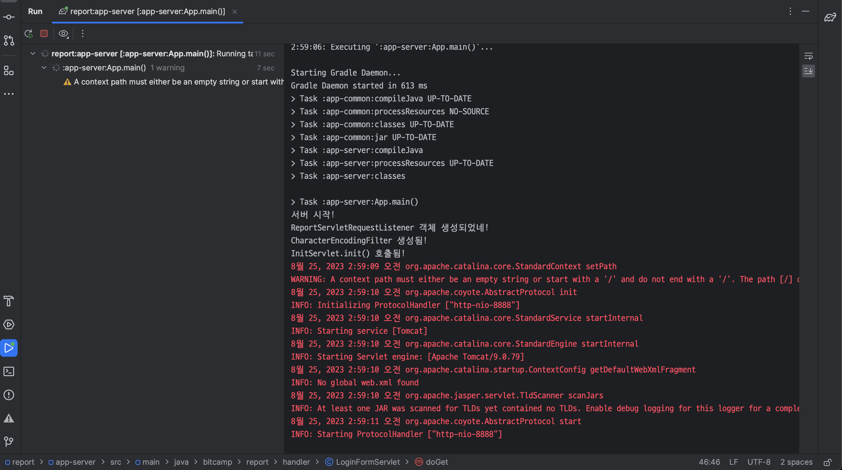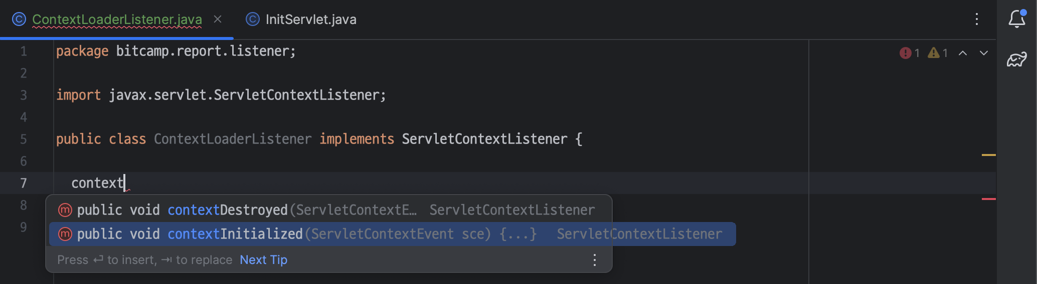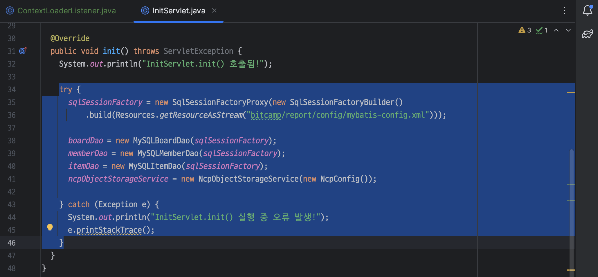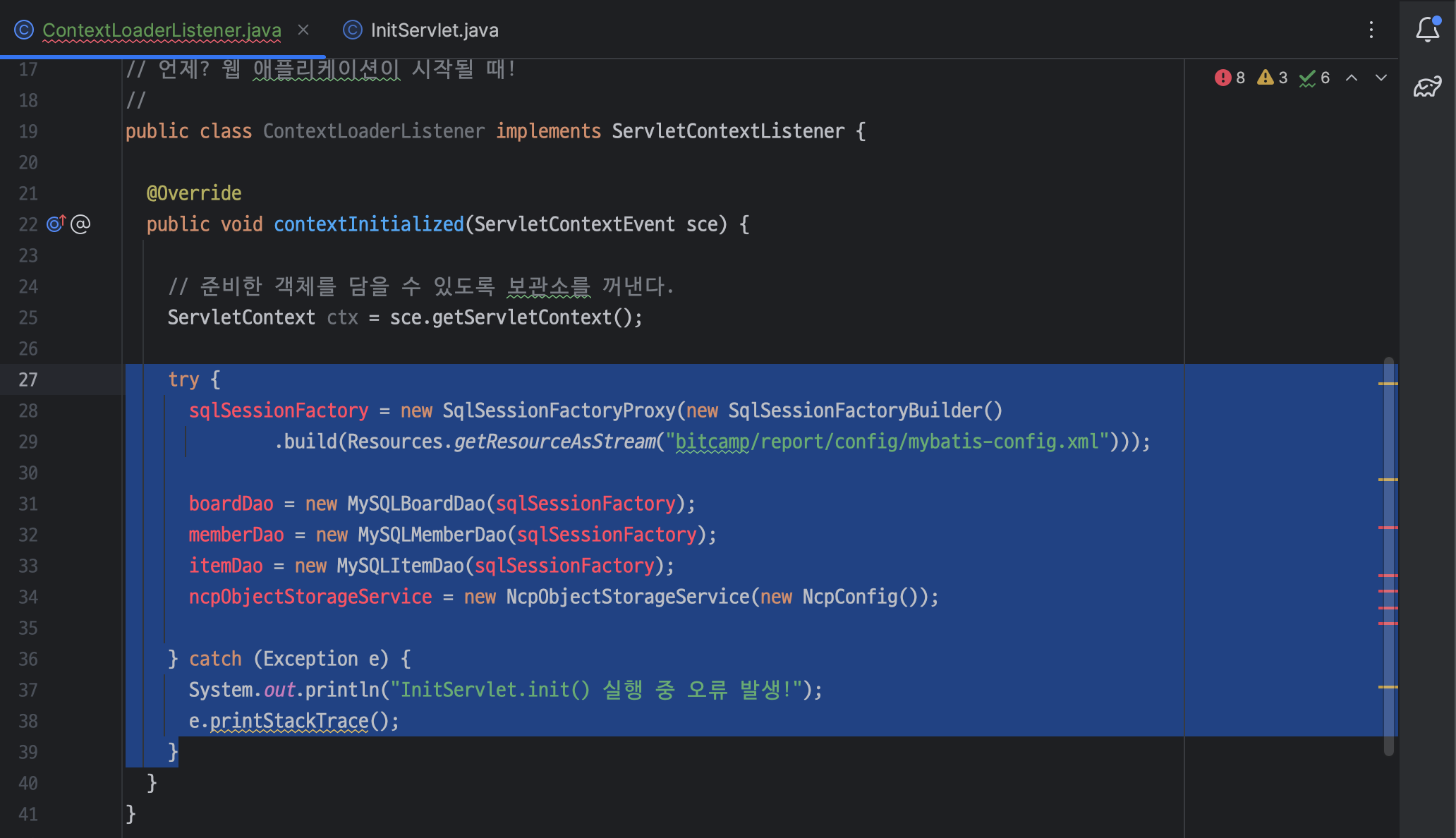 ㄴ InitServlet.java 삭제하자마자 수정한 코드를 제외하고 모두 에러 발생