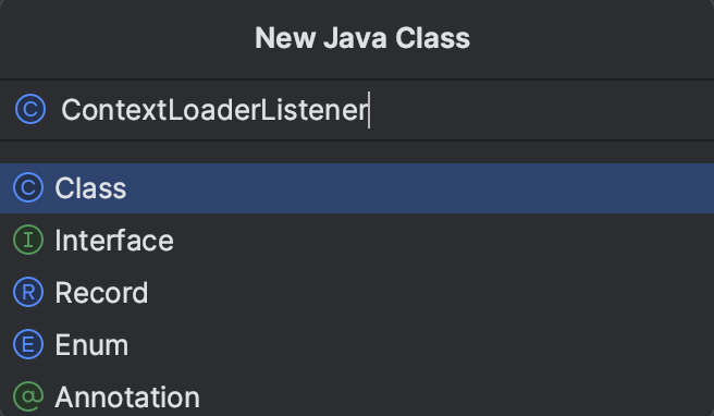 ㄴ listener 패키지에 ContextLoaderListener 라는 이름의 새로운 클래스 파일 생성