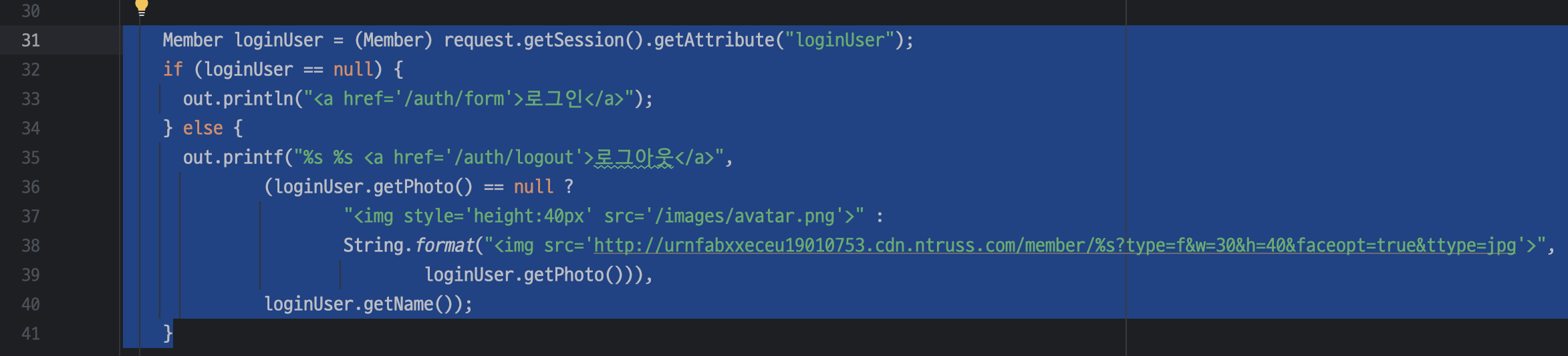 out.println(String.format("%s <a href='/auth/logout'>로그아웃</a>", loginUser.getName()));