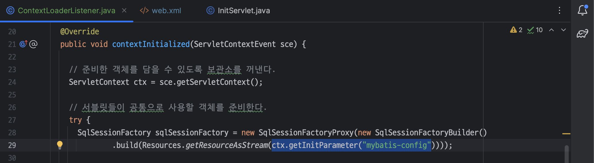ㄴ InitServlet 대신 해당 객체들을 ContextLoaderListener 에서 생성해주도록 함