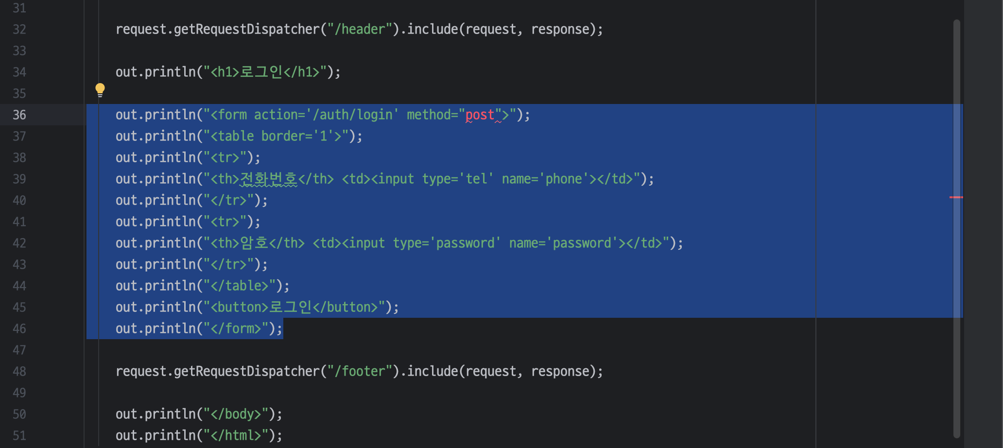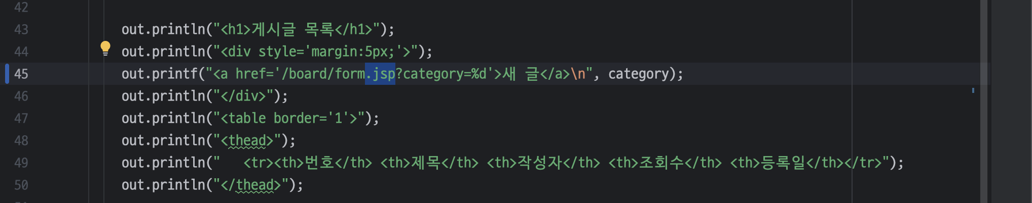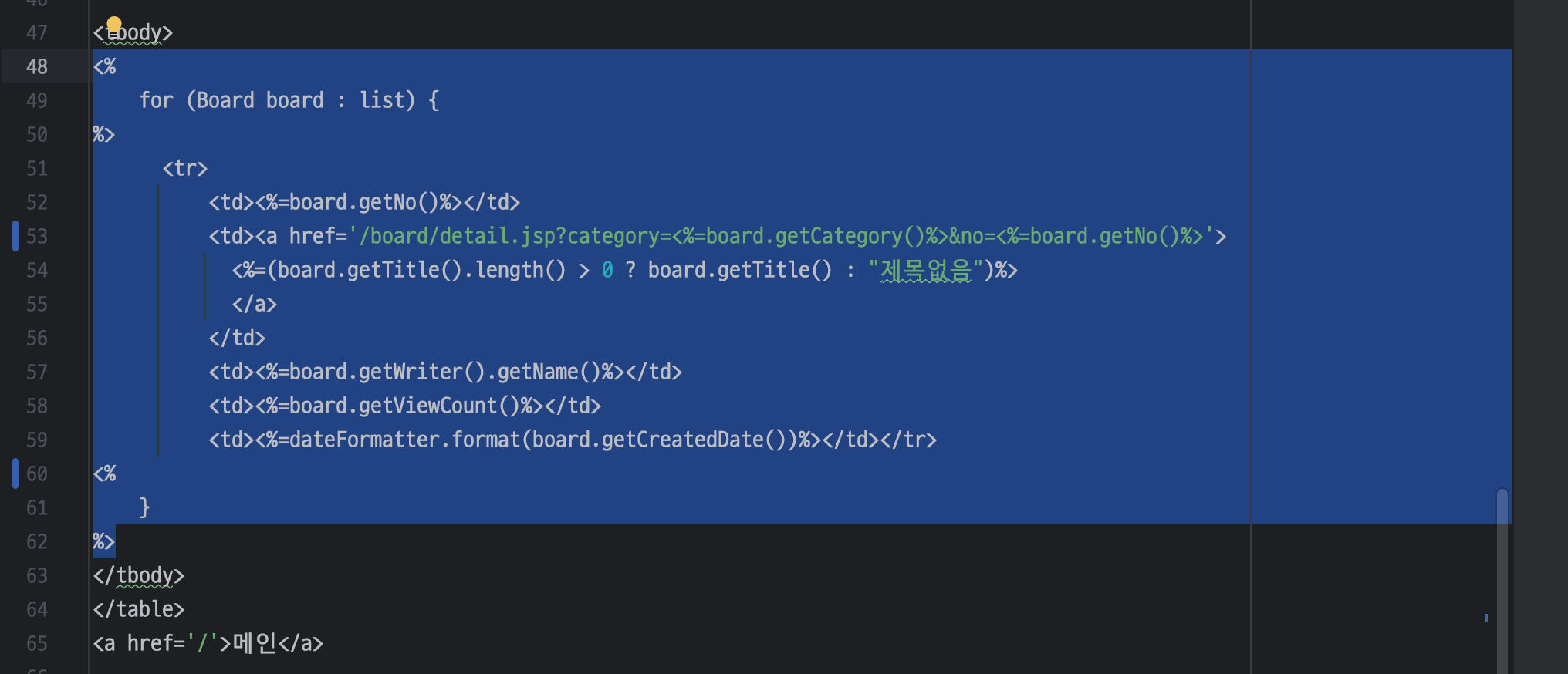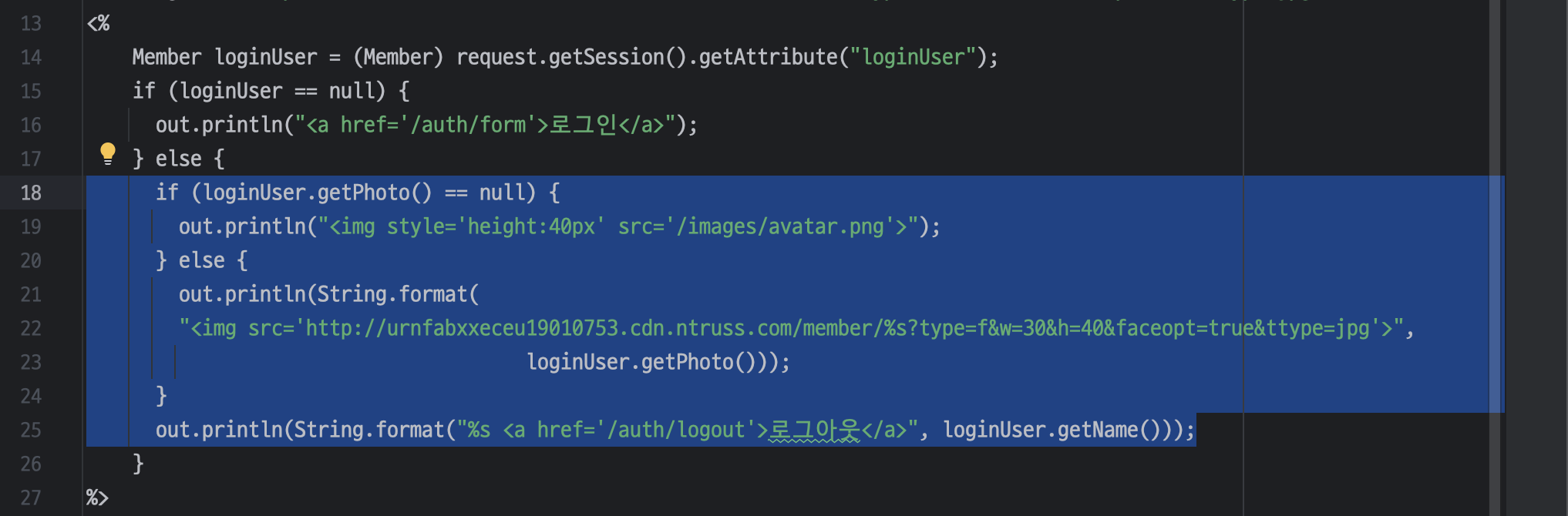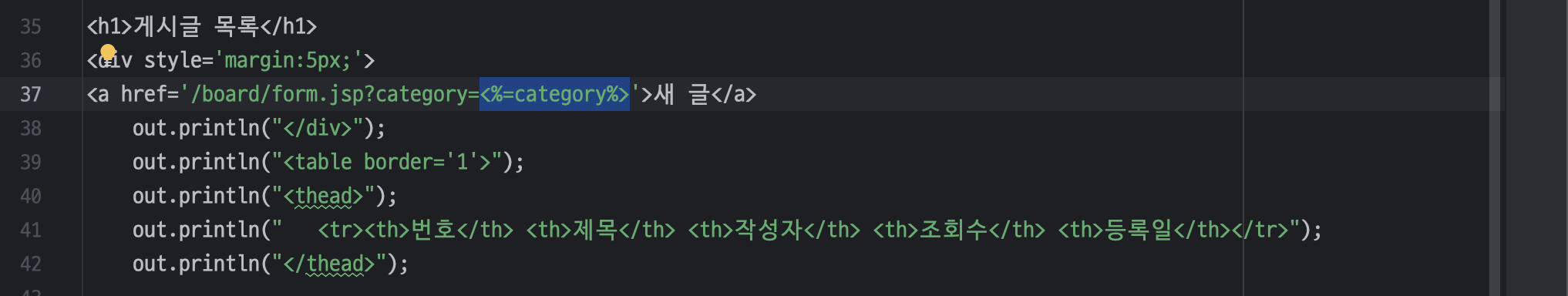 ㄴ 자바 코드는 <% %> (스크립트릿)으로 묶어주기