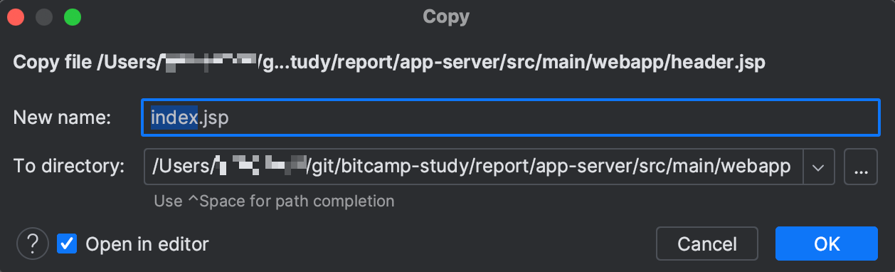 ㄴ 복사한 파일을 같은 위치에 index 라는 이름으로 붙여넣기
