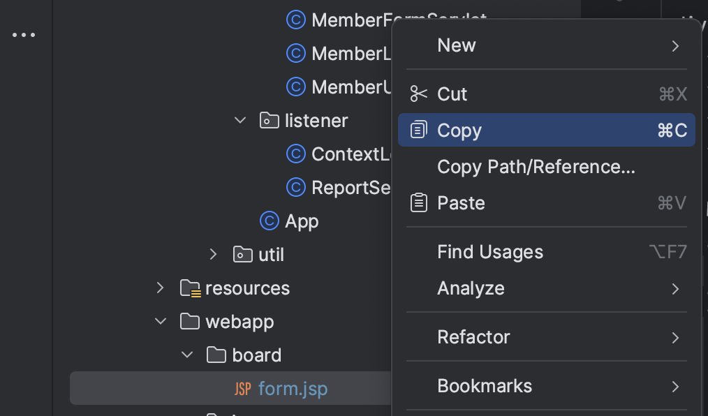 ㄴ BoardFormServlet.java 파일 복사하기