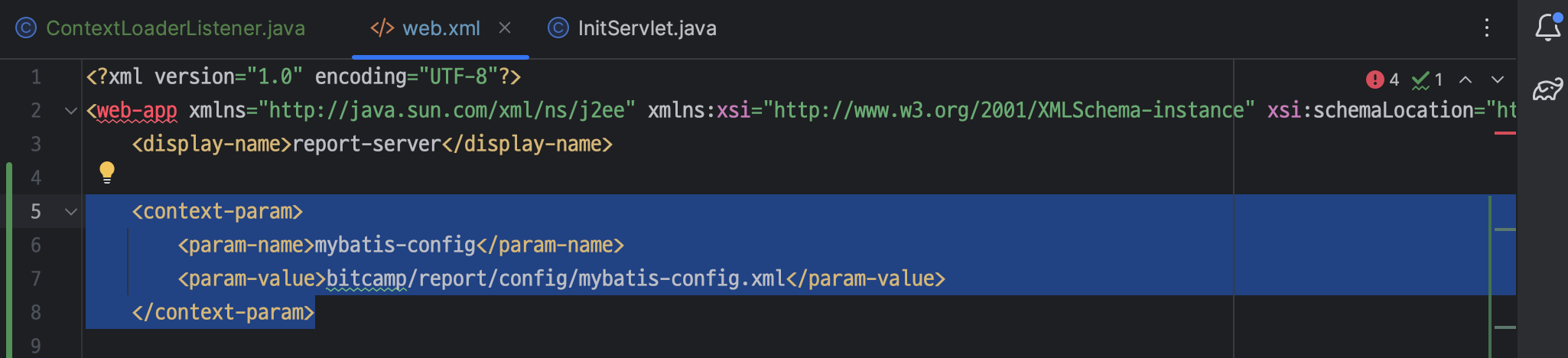 ㄴ <context-param> 태그의 <param-name> 에 mybatis-config 추가하기