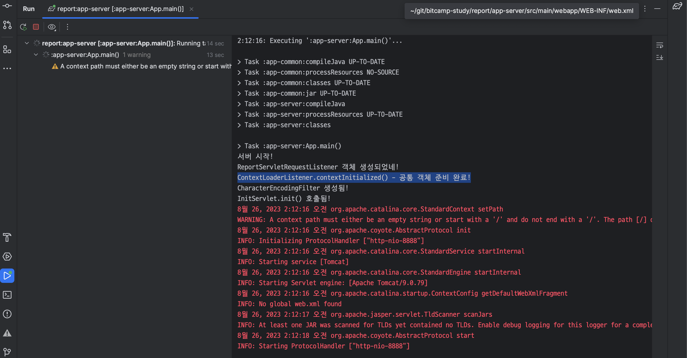 ㄴ <context-param> 태그의 <param-value> 에 복사한 경로 붙여넣기