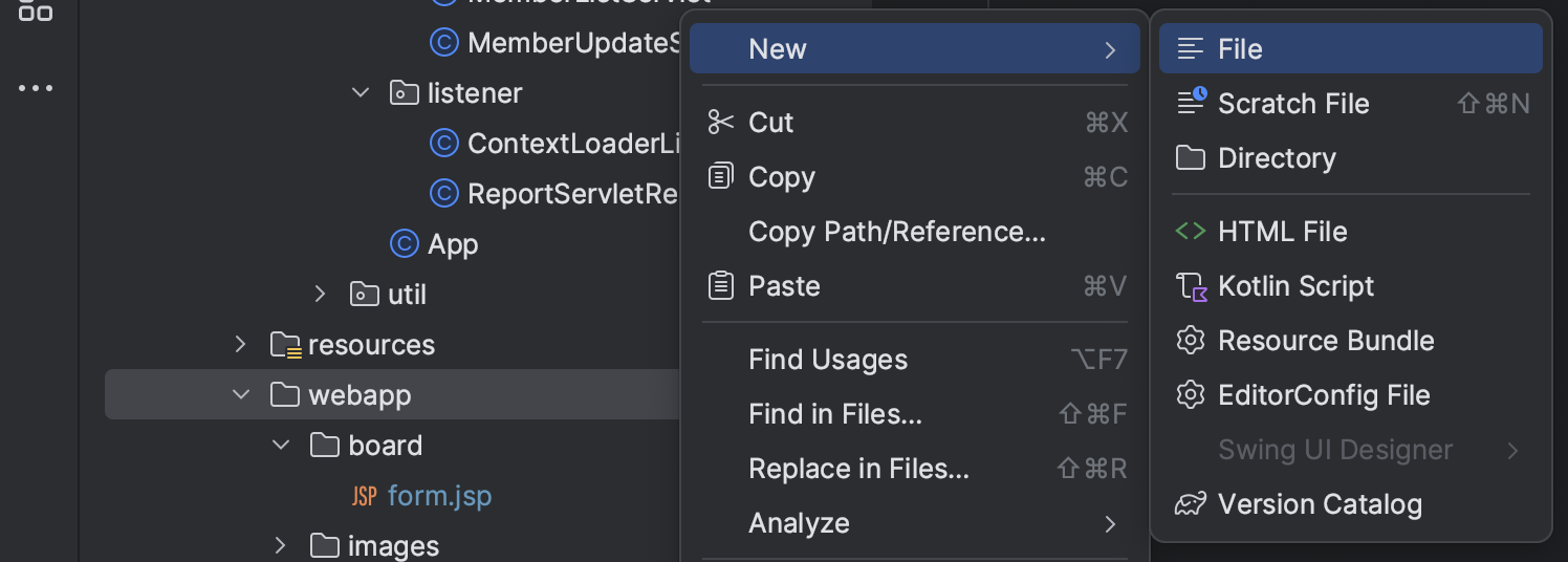 ㄴ webapp/board/form.jsp 파일 복사