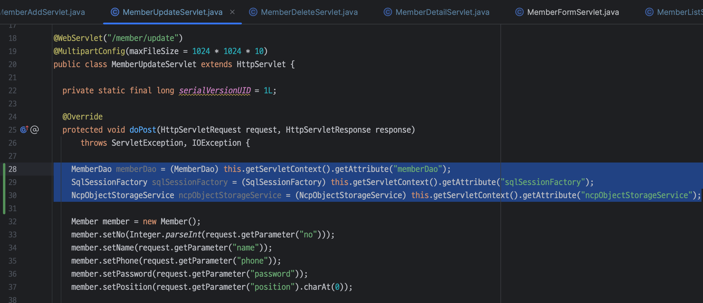 MemberUpdateServlet.java