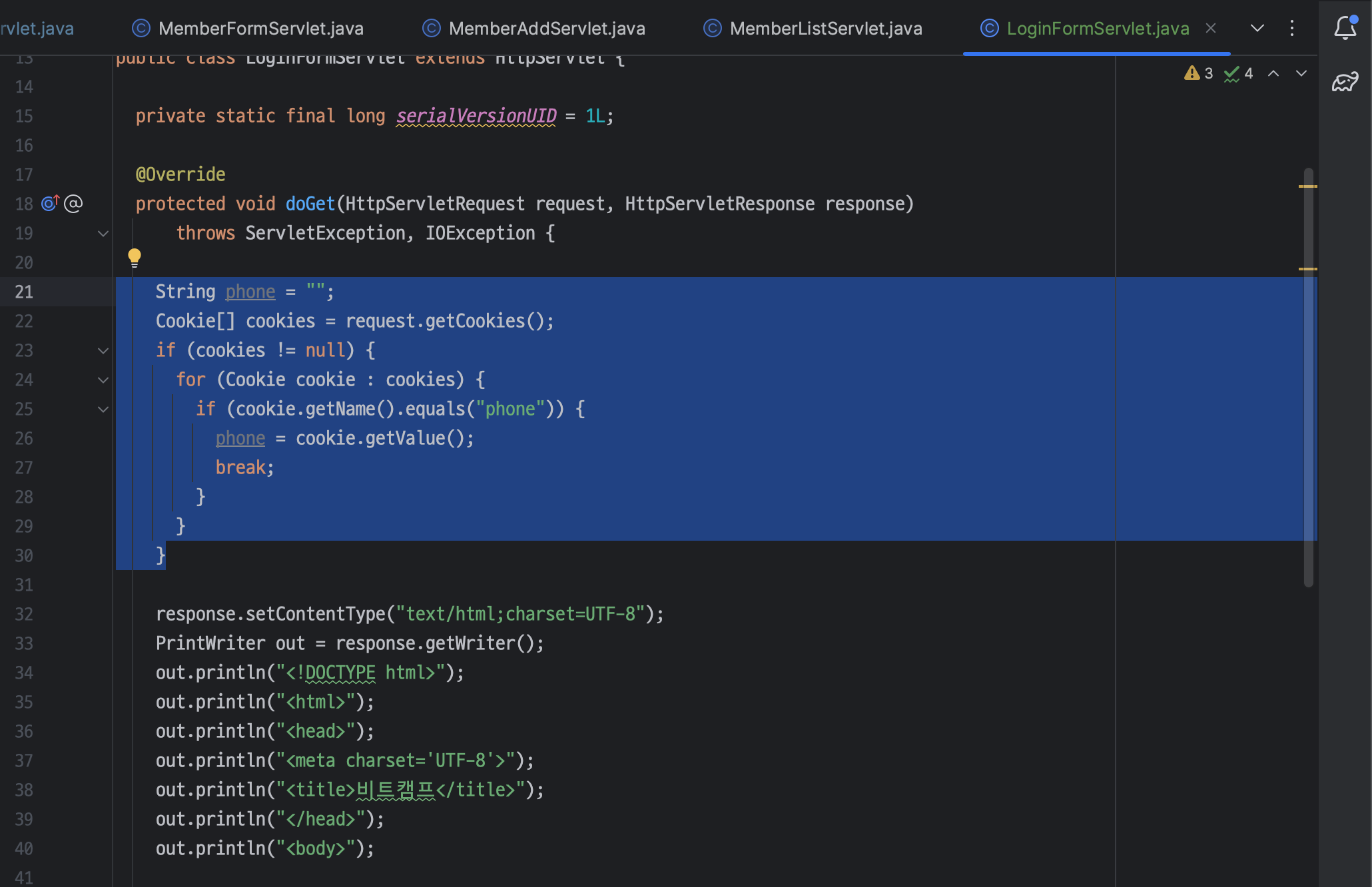 ㄴ servlet 관련 import 는 알아서 해주므로 제거
