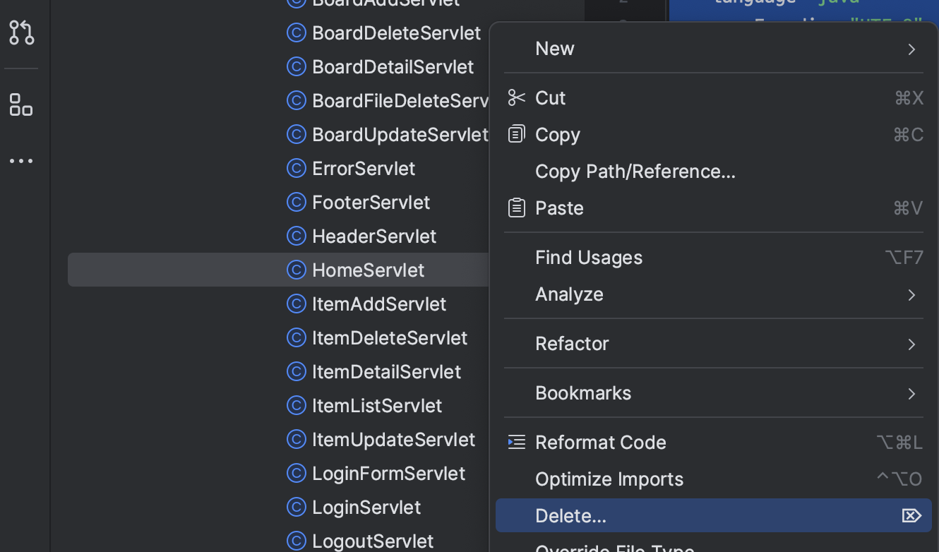 ㄴ HomeServlet.java 파일 삭제