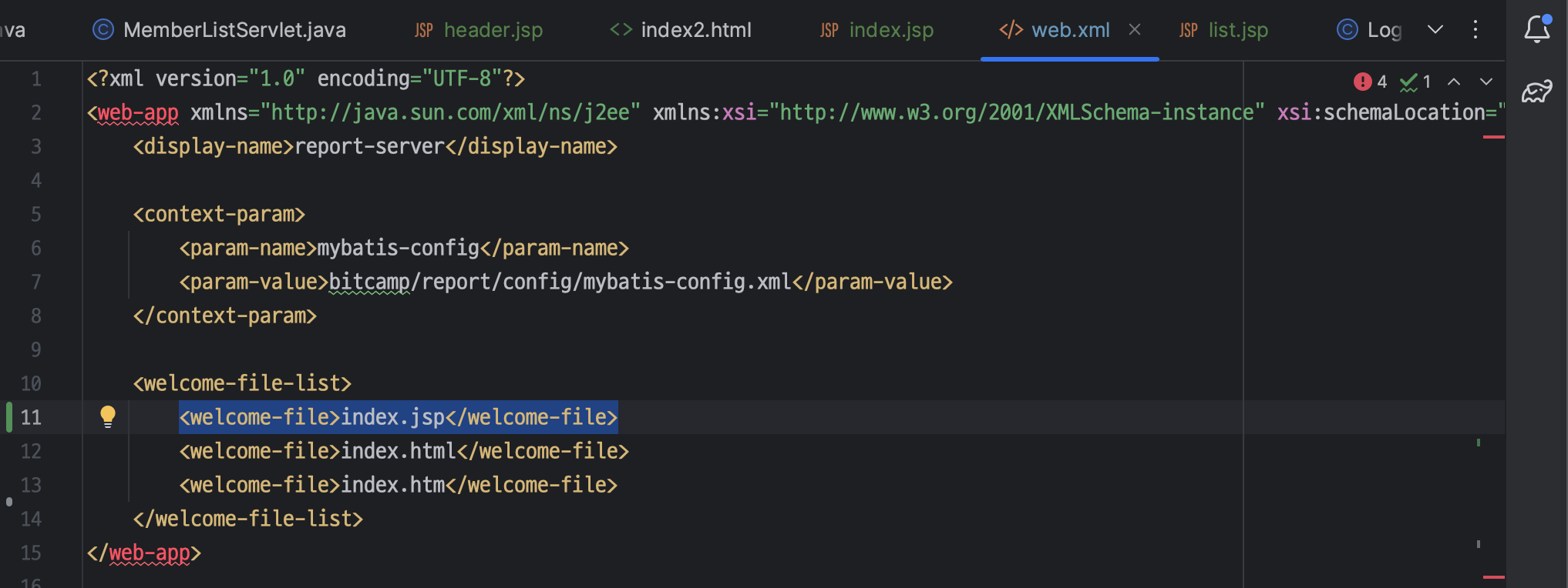 ㄴ <welcome-file> 태그에 index.jsp 를 맨 위로 올려주도록 함