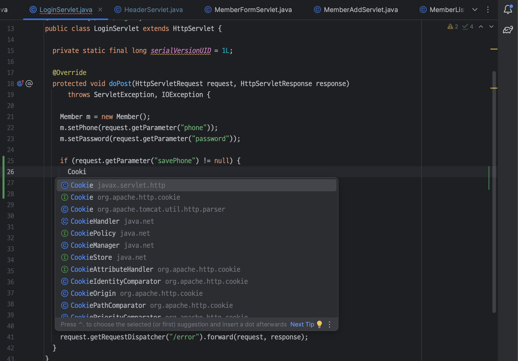 ㄴ javax.servlet.http 의 Cookie 클래스 import 하기