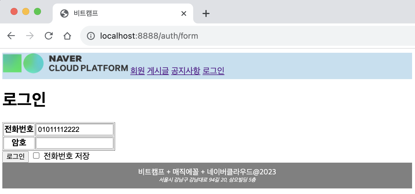 쿠키를 이용하여 로그인 할 때 입력한 전화번호을 보관하는 기능 추가하기