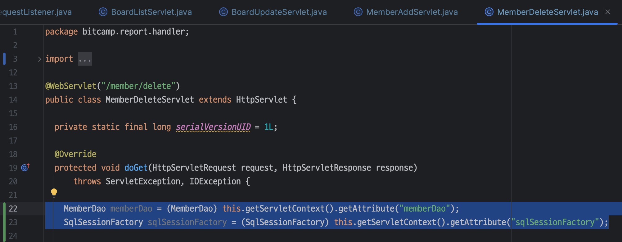 BoardDao boardDao = (BoardDao) this.getServletContext().getAttribute("boardDao");