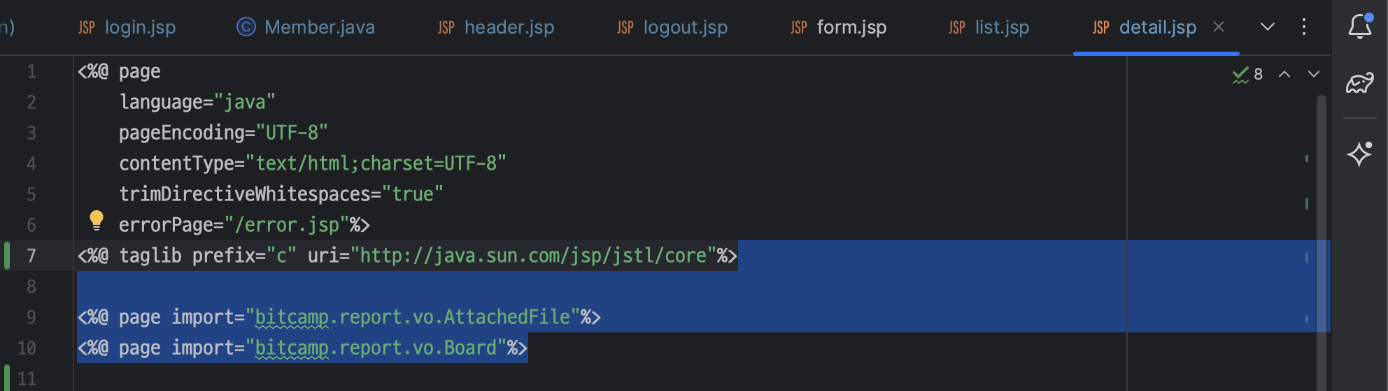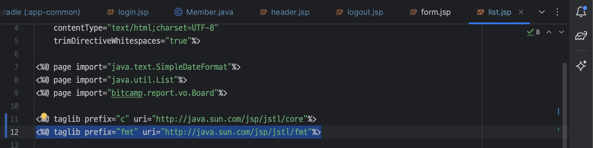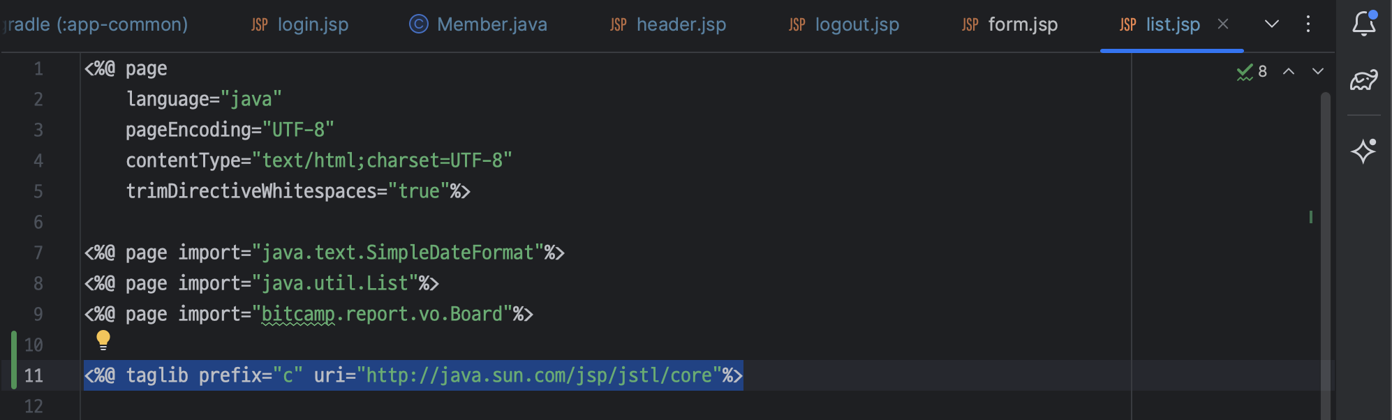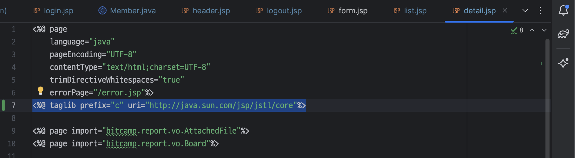 ㄴ jstl 태그 설정 추가