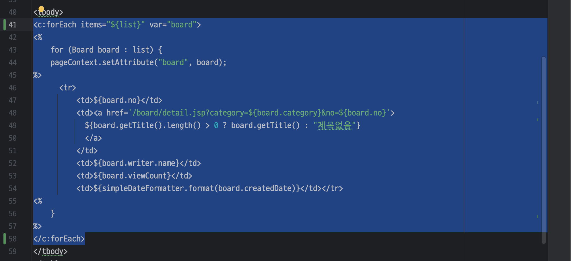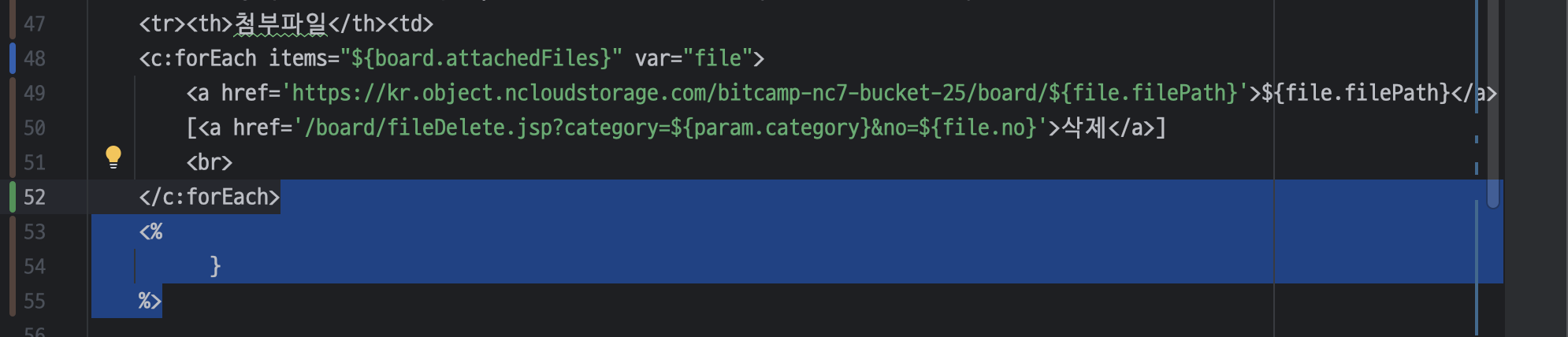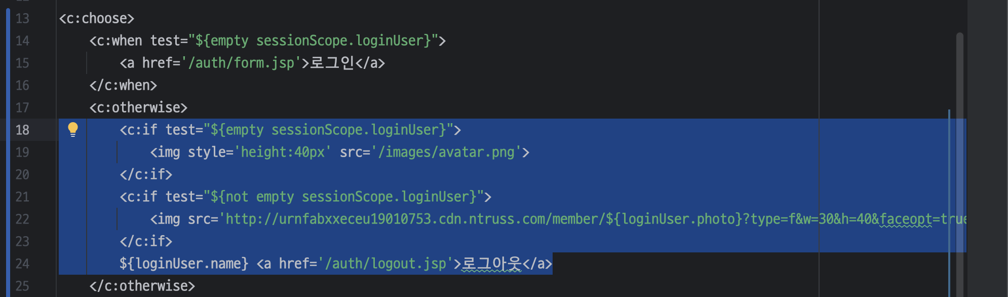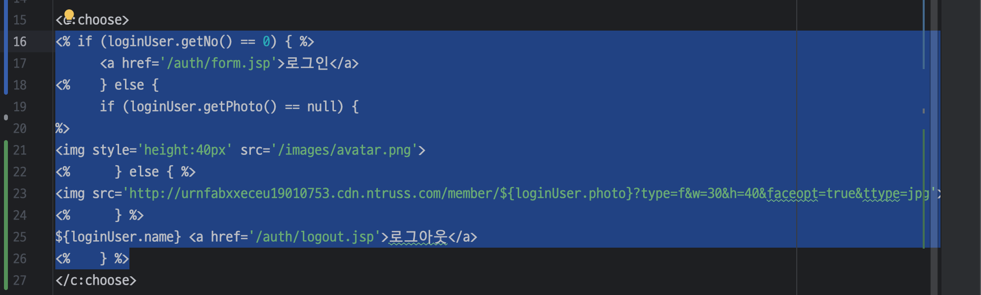 ㄴ 해당 코드를 jstl 태그로 변경