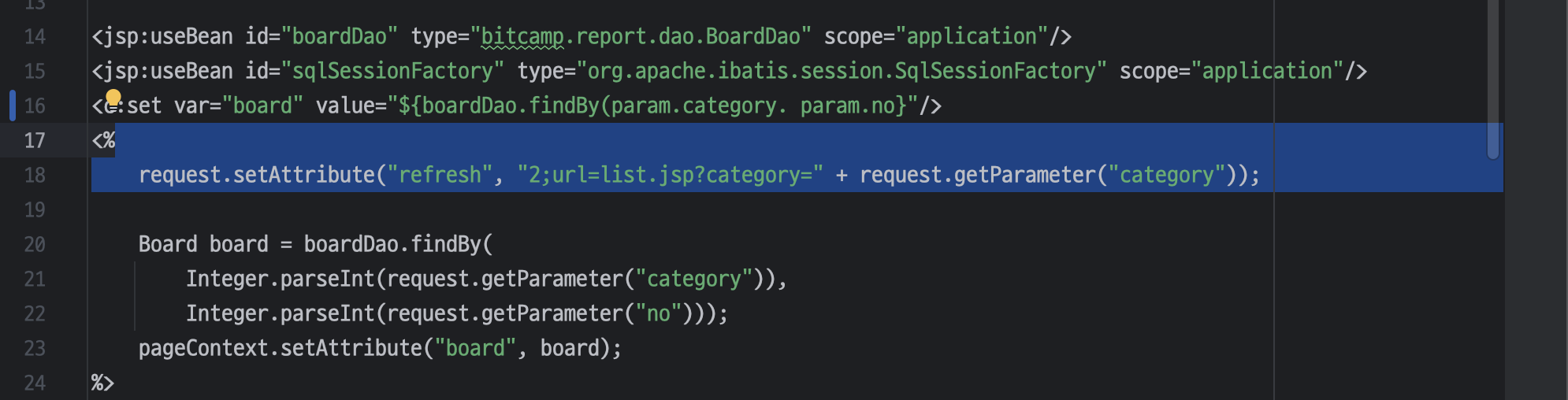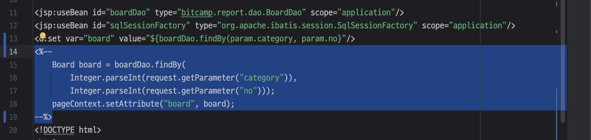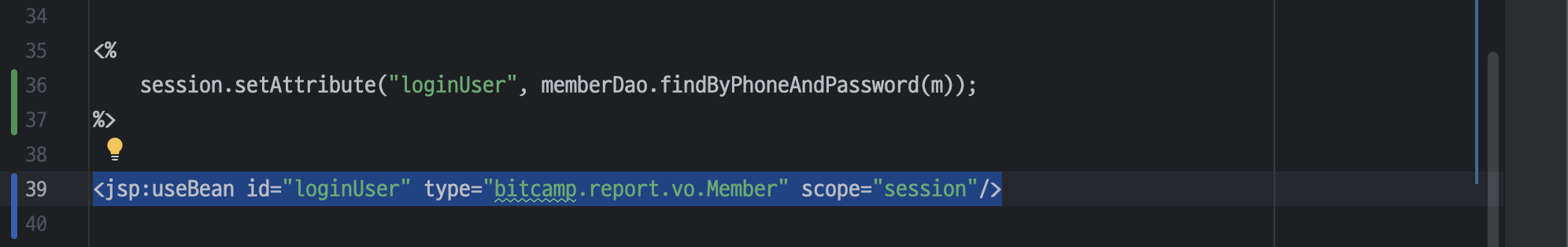 <jsp:useBean id="memberDao" type="bitcamp.report.dao.MemberDao" scope="application"/>