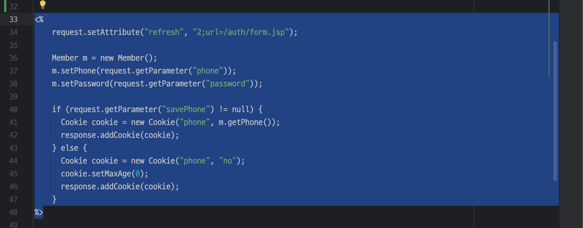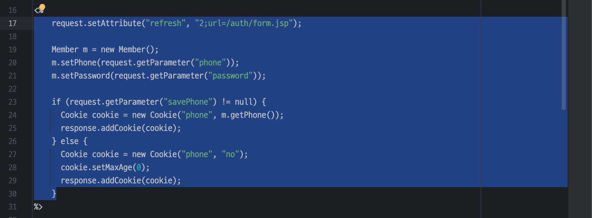 Cookie cookie = new Cookie("phone", m.getPhone());