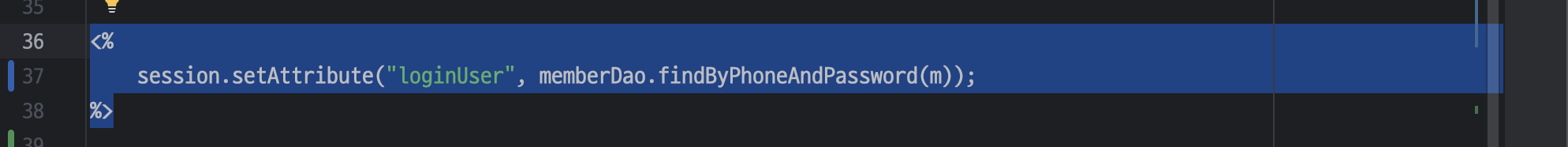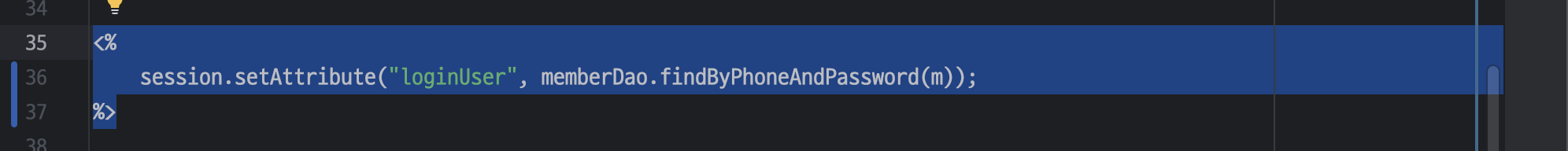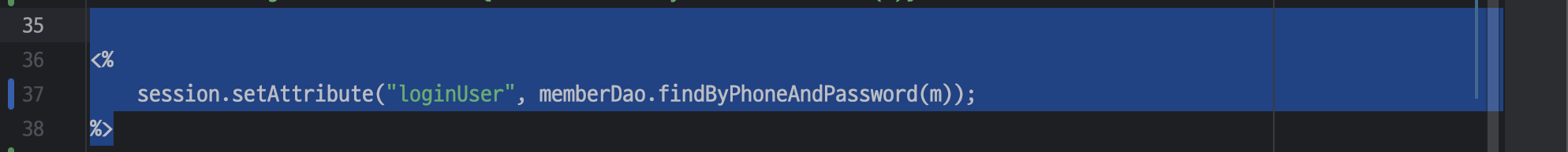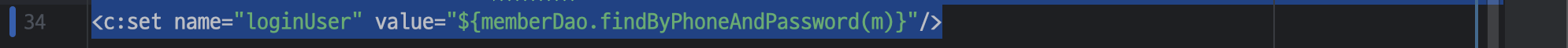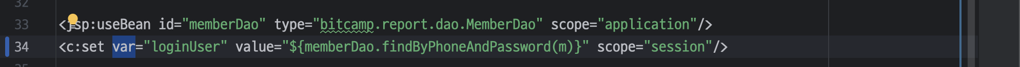 <c:set var="loginUser" value="${memberDao.findByPhoneAndPassword(m)}" scope="session"/>
