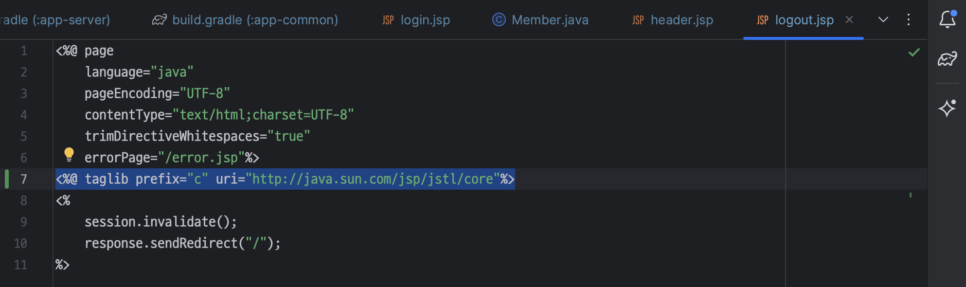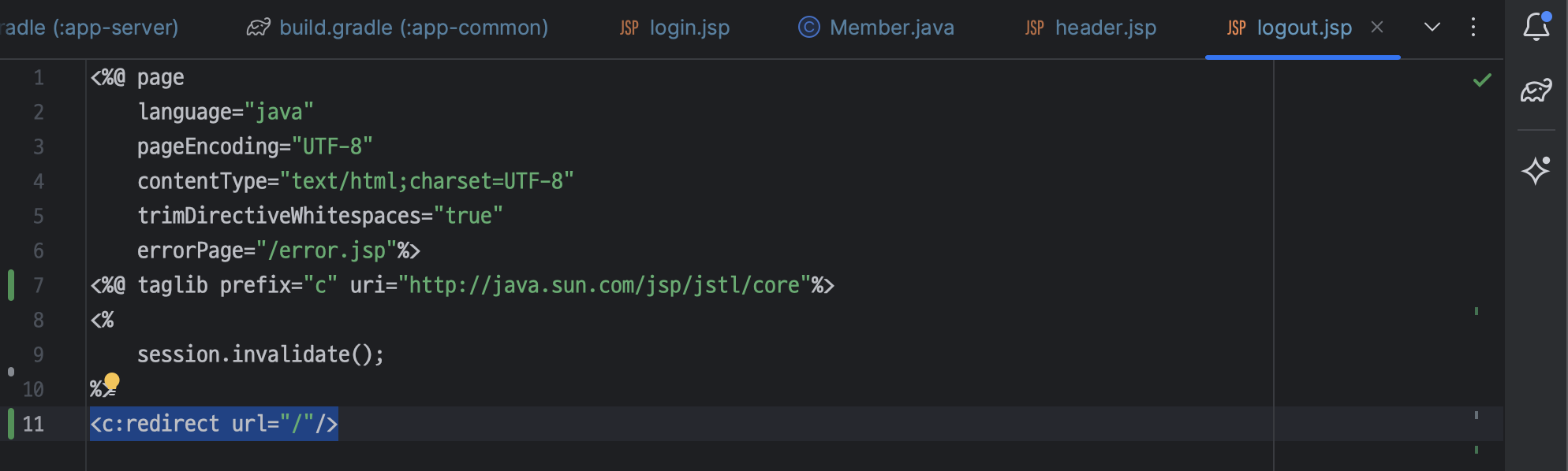 ㄴ response.sendRedirect("/"); 대신 jstl 태그로 변경