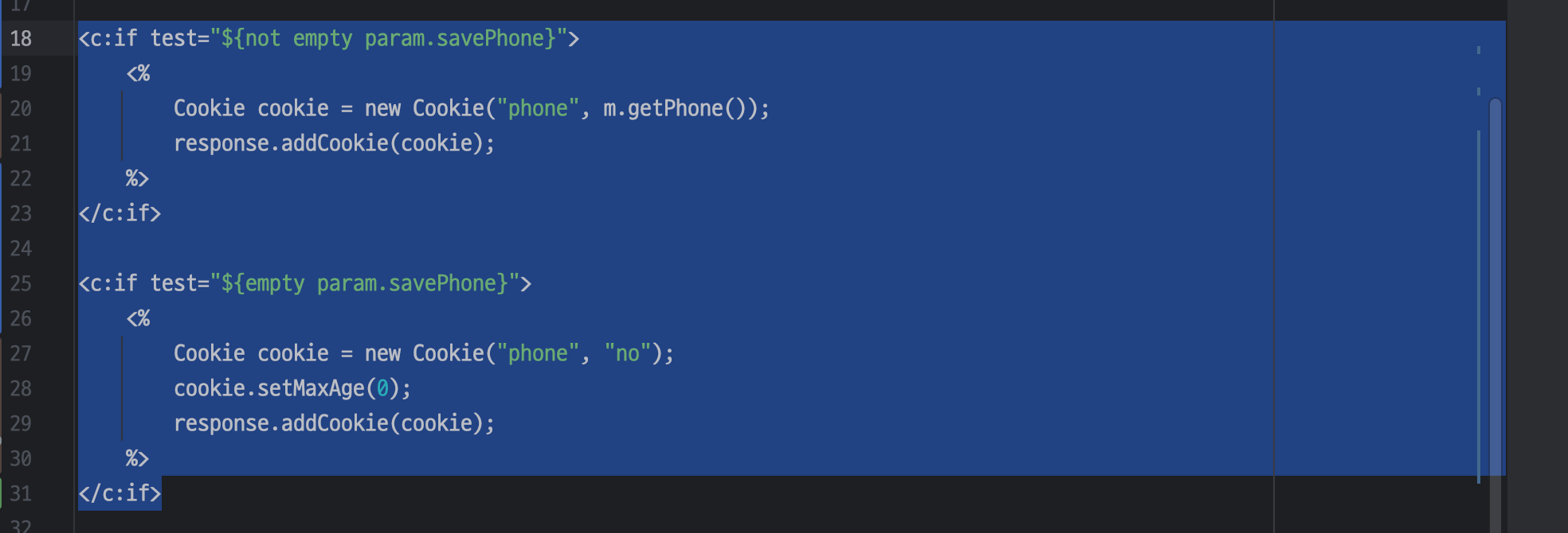 <c:if test="${empty param.savePhone}">