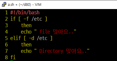| [ -f file ] | 존재하면서 일반 파일인가? (디렉터리, 장치파일 아님) |