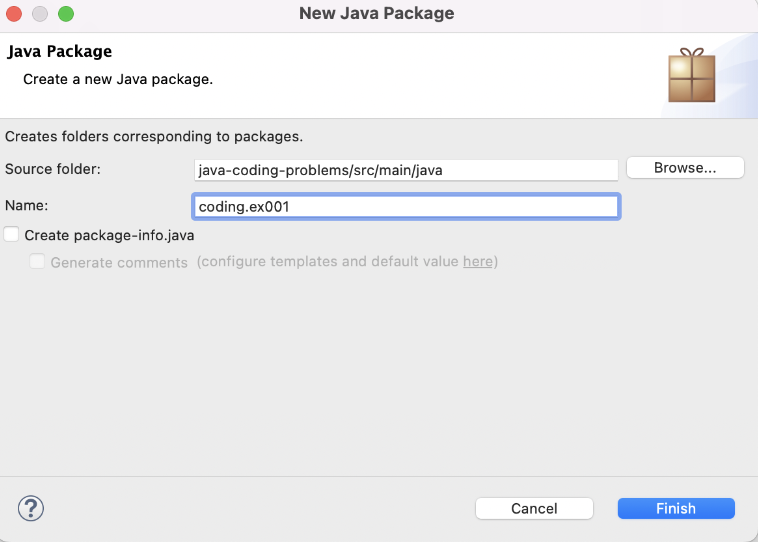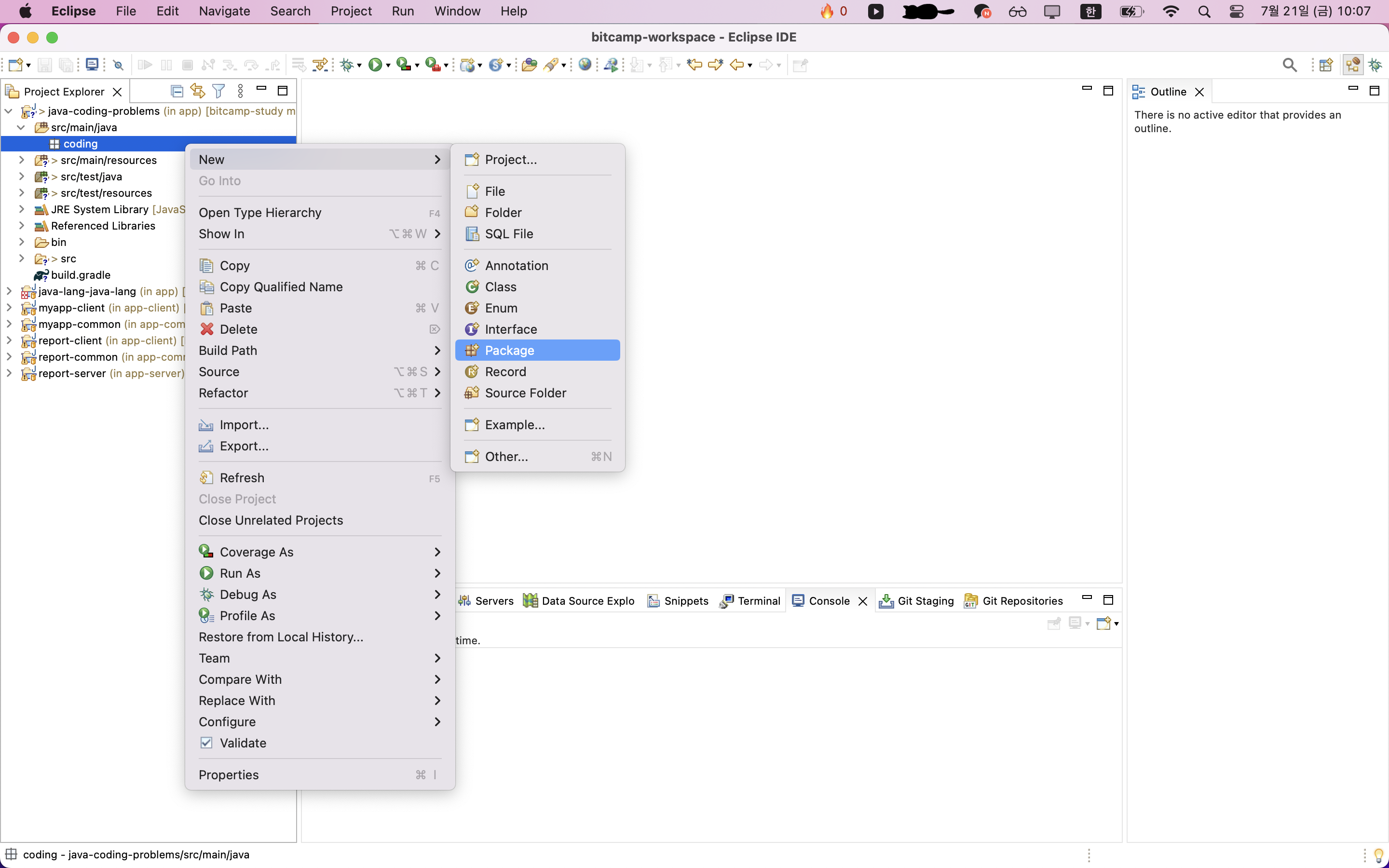 => coing 패키지 밑에 coding.ex001 이라는 이름의 패키지 생성